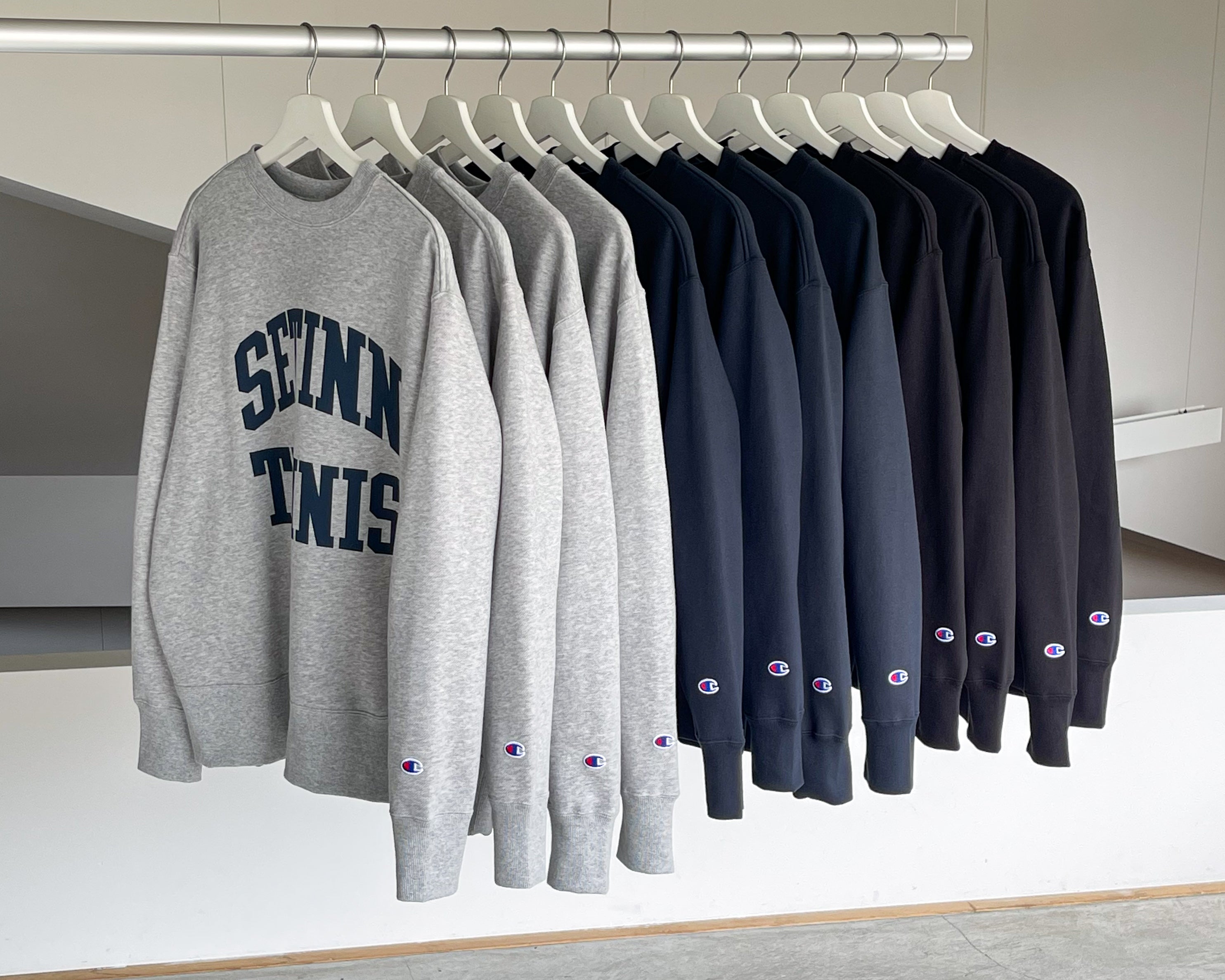 【SETINN】Champion STN TENNIS CREW SWEAT - BLACK