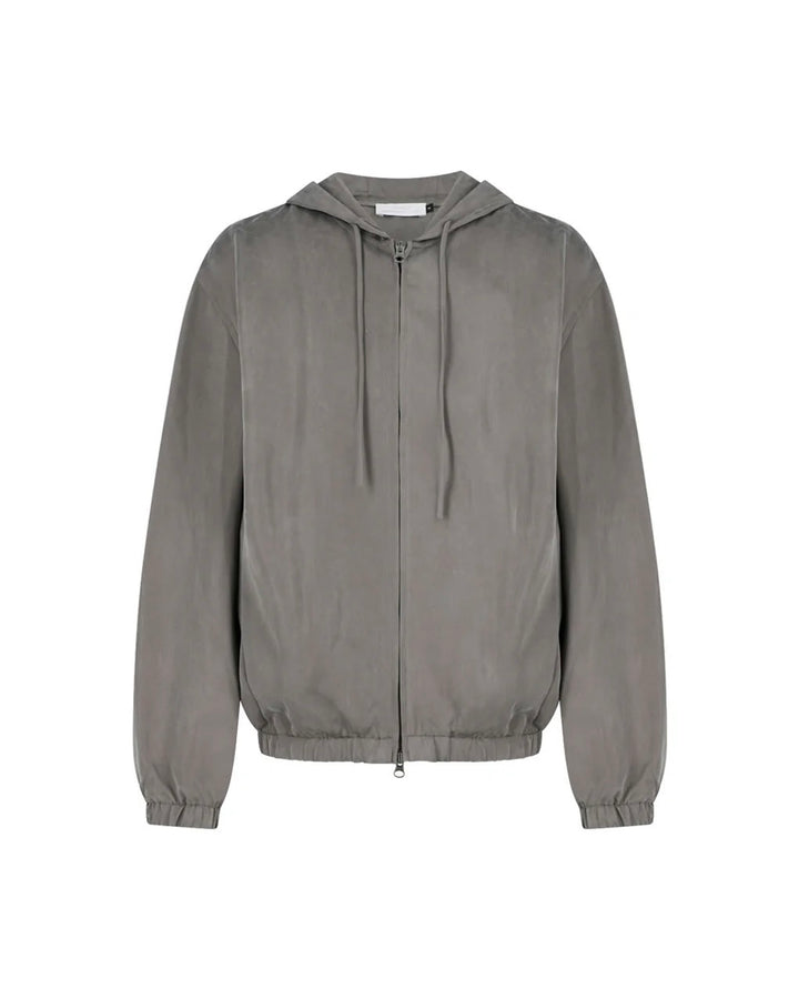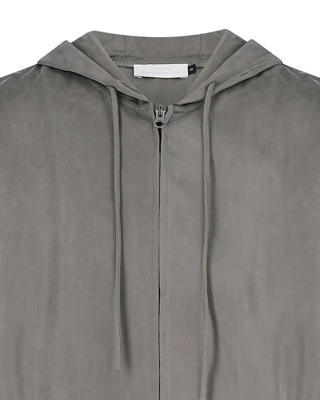 [AMOMENTO] CUPRO HOOD ZIP UP JUMPER - GRAY