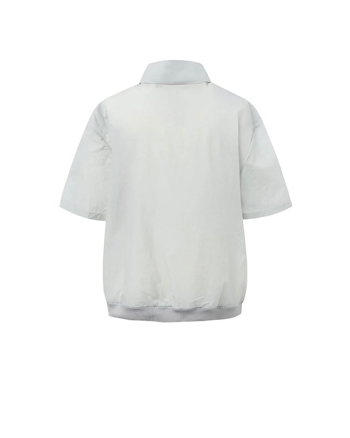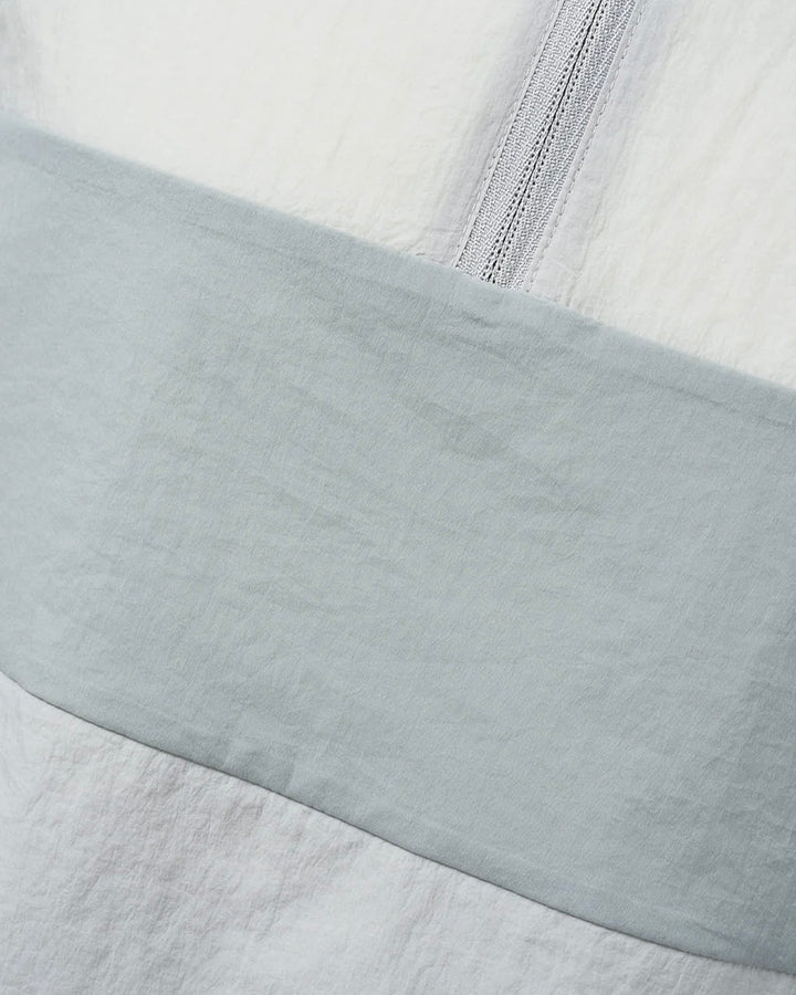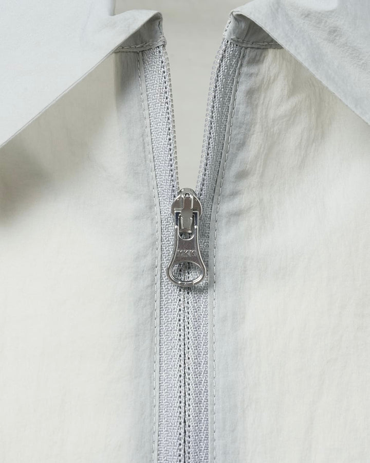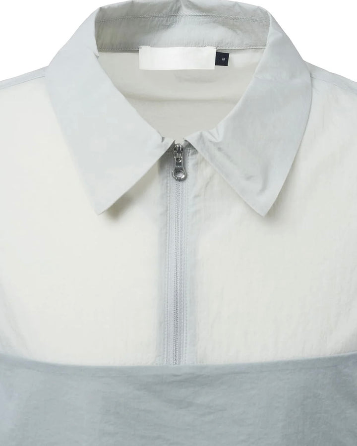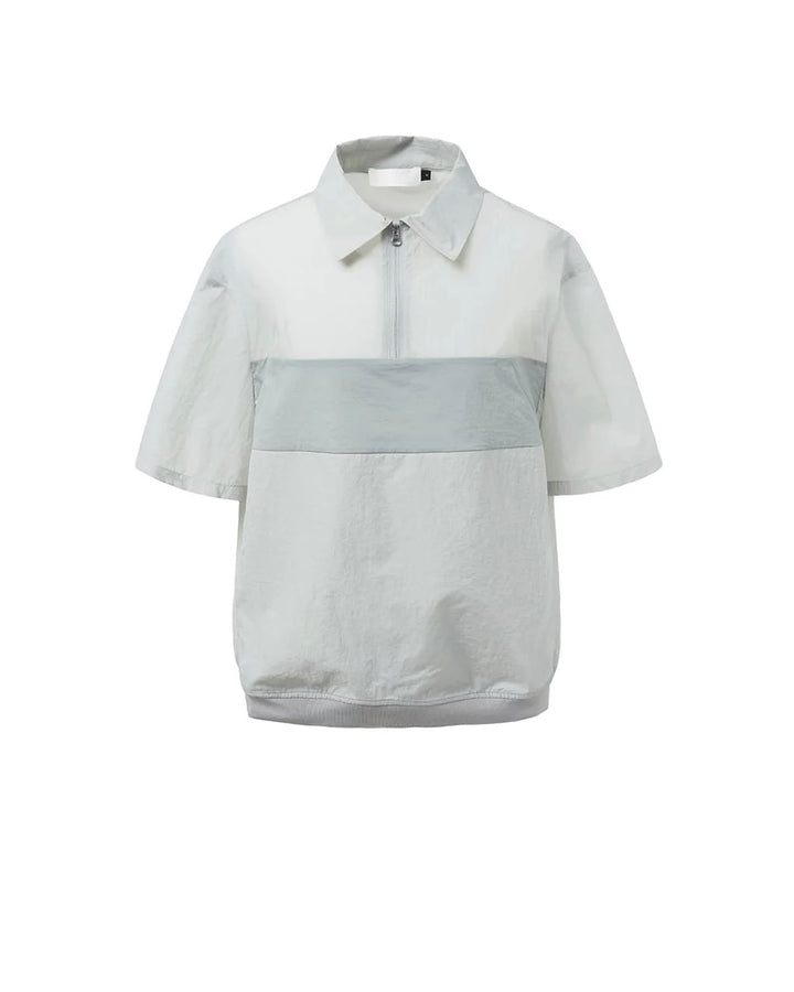 This half zip-up top is made of sheer nylon material. It features a color block color scheme, and the design that combines a single collar and a half zip-up fastener gives a sporty yet minimalist impression. Taking advantage of the characteristics of the sheer nylon material, this is a highly versatile item that is suitable for layering with inner items or wearing alone.