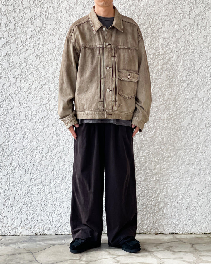 The colors are created with an idea of the changes that occur over time that are different from those seen in vintage clothing, and the process is carried out by hand by skilled craftsmen to create a depth that can be felt as multiple layers.
