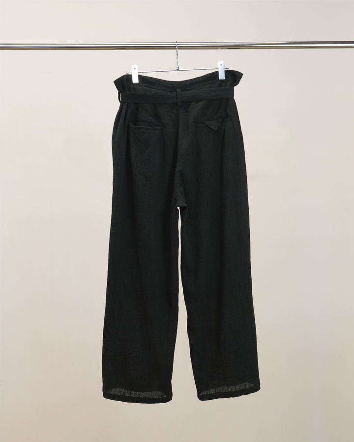 【ANCELLM】BELTED CREPE TUCK SLACKS - BLACK