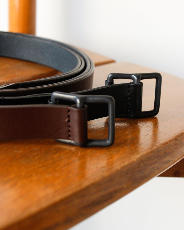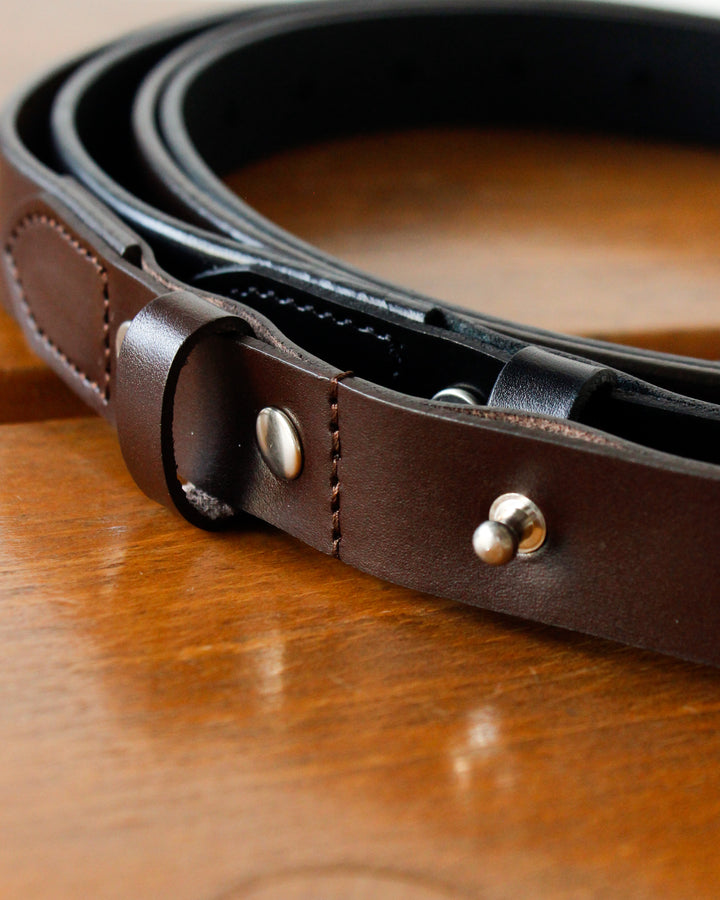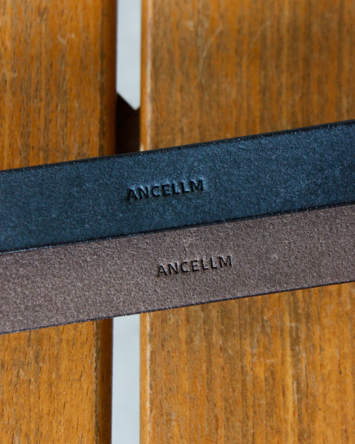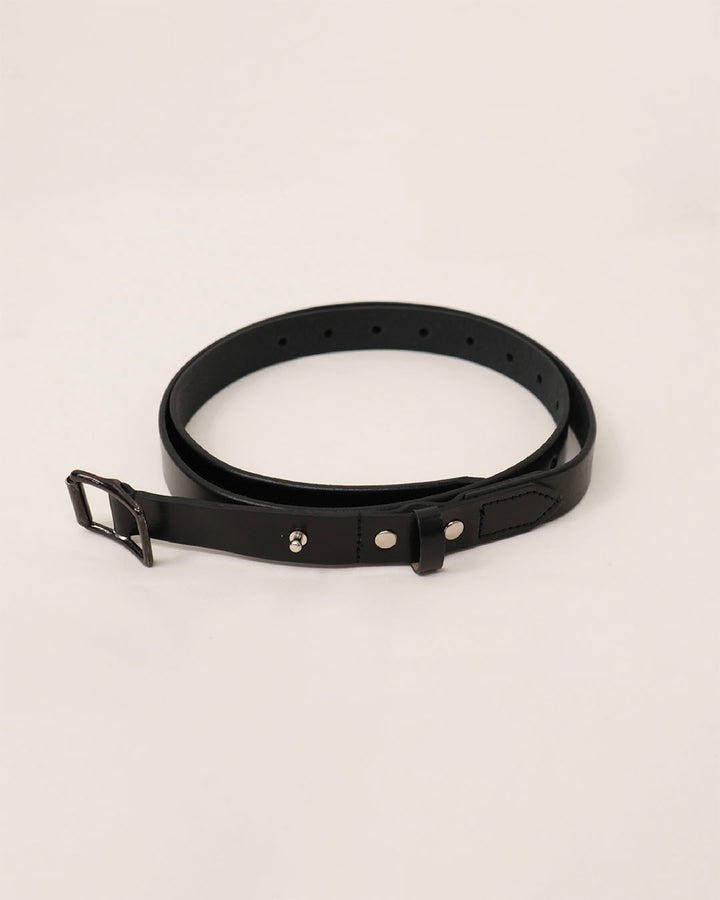 [ANCELLM] BUTTON STUD LEATHER BELT - BLACK