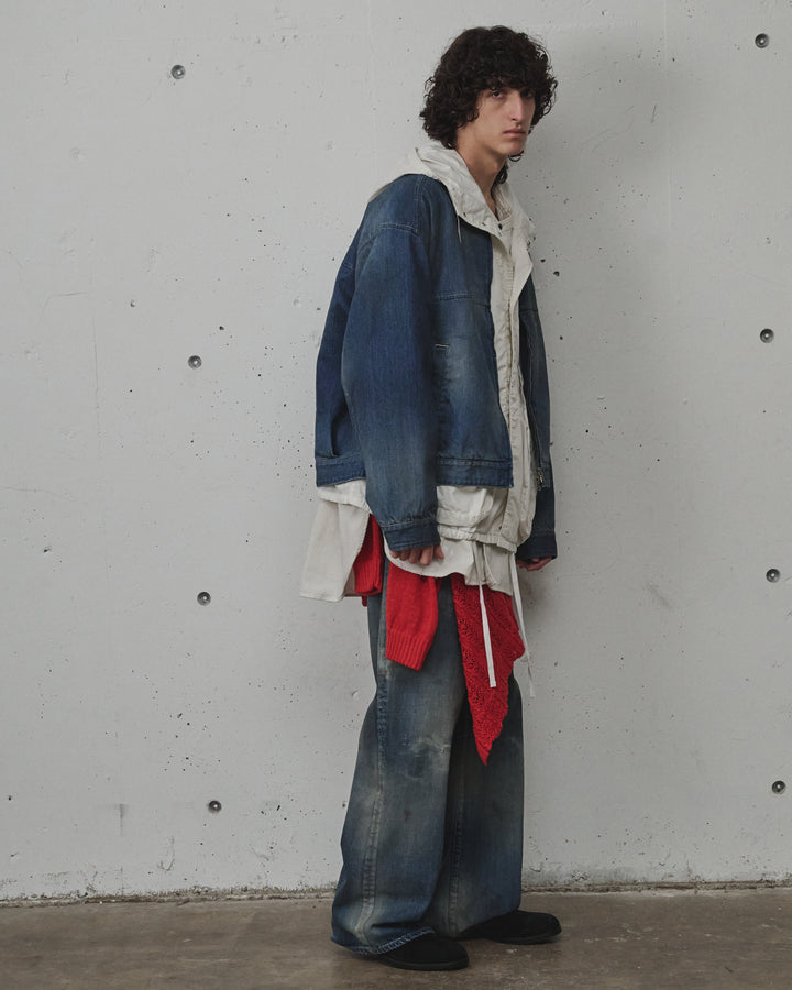 The design is as simple as possible, with only the small pocket design reminiscent of workwear as the focal point, so as not to overshadow the strong look of the denim. The pattern also creates a three-dimensional effect. The front has a double zipper, so you can enjoy changing the silhouette.