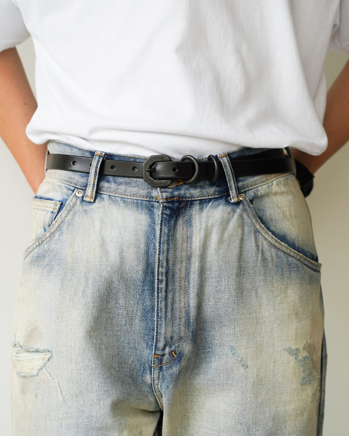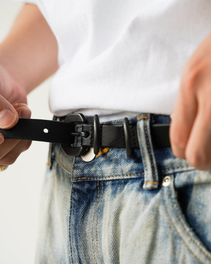 [ANCELLM] NARROW LEATHER BELT - BLACK