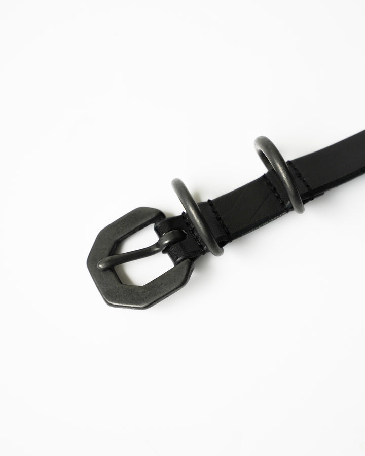Narrow type leather belt with double ring design.