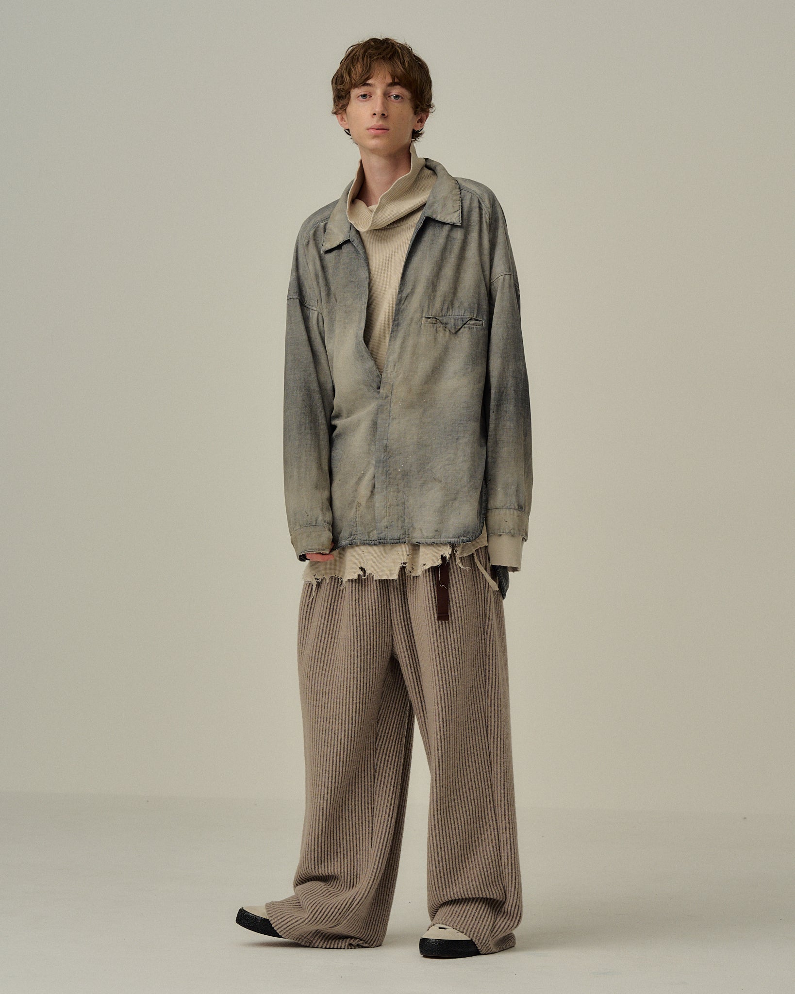 These shirt jackets and slacks are made from a cut material that combines wool and cotton, knitting with a strong corduroy rib. They are very comfortable to wear, and many customers have already become addicted to them in store.