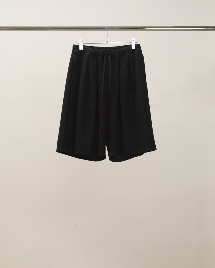 [ANCELLM]WRINKLED STRIPE TUCK SHORT PANTS - BLACK