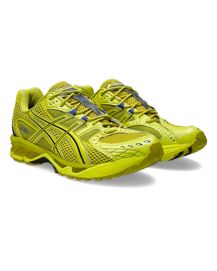 Based on the running shoe "GEL-NIMBUS 10" released in 2008, the hybrid model "GEL-NIMBUS 10.1" combines heritage and innovation. It has been updated to meet modern lifestyles while emphasizing the comfort of the original. The asymmetric upper structure is designed with the foot's skeletal structure in mind, and the combination of breathable open mesh, leather and synthetics provides both support and durability. The sole is equipped with "GEL™" technology in the heel and forefoot, and the "GUIDANCE TRUSSTIC™" and "TRUSSTIC®" systems improve stability, and in combination with the two-layer EVA midsole, it achieves high cushioning. The concept is "still running on comfort", and while maintaining the original comfort, it incorporates the touring system of the "GEL-KAYANO 14" to enhance functionality. By adopting modern materials, it has evolved into a shoe that pursues ease of wear in everyday life. This time, the shoes are colored in lemon color, which creates a strong impact on the feet, and are unified in yellow tones from the upper to the "GEL" sole. The fresh finish with a pop and positive mood is attractive.