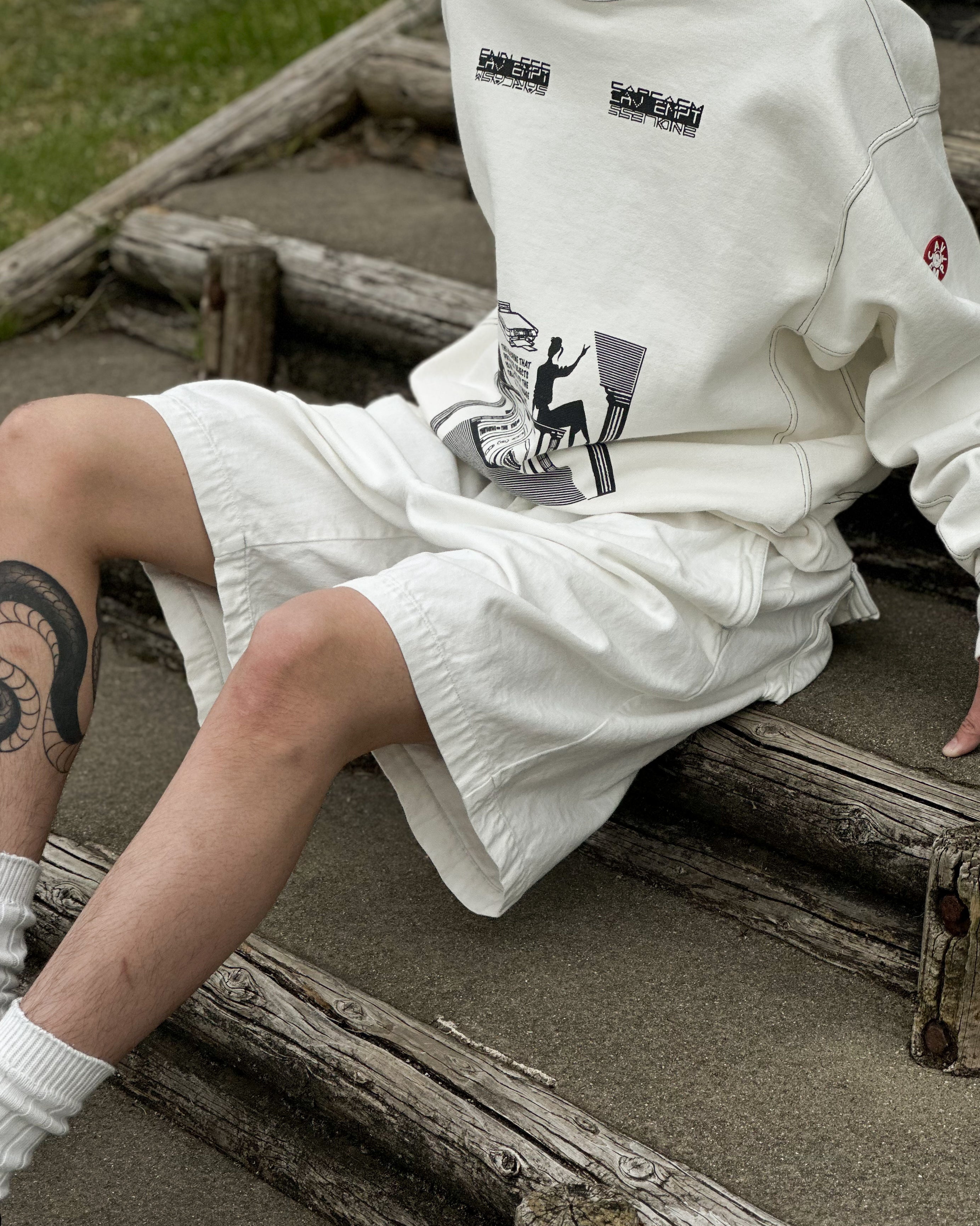 [CE]ULT BLEACHED DENIM COMFORT SHORTS - WHITE