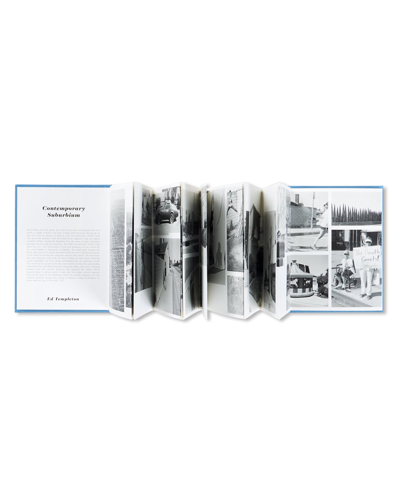 Both authors make full use of the accordion-folded bookbinding for their respective photographs and words, with Ed's work laid out on one side and Diana's work on the other.