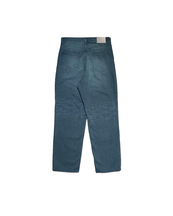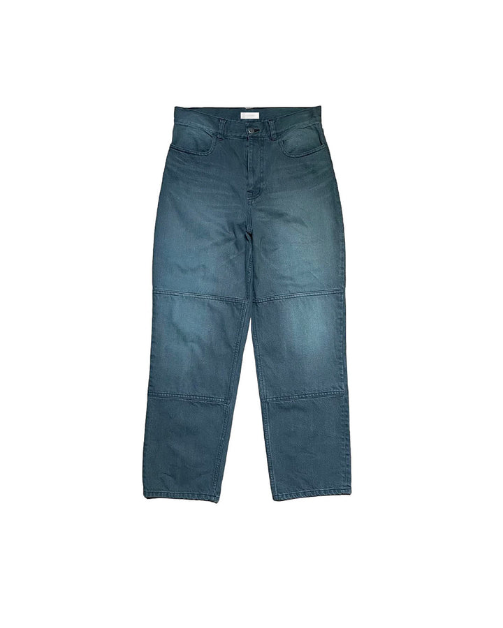 This pair of jeans features double knee denim with an overdyed finish for an exquisite color. It is made of 100% cotton with a moderate texture. It comes with a leather patch with the brand logo.