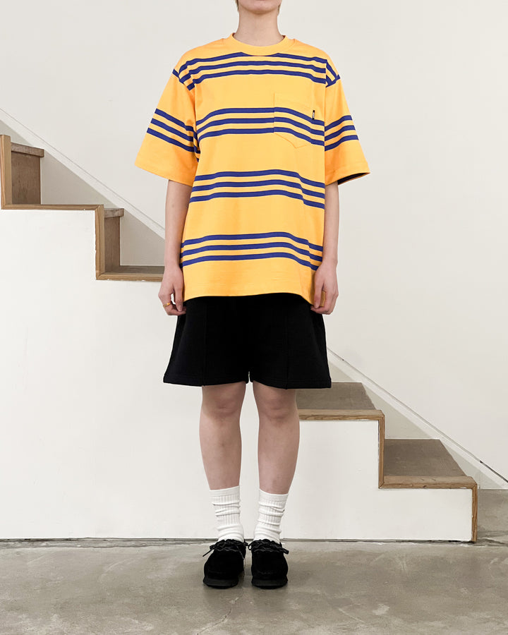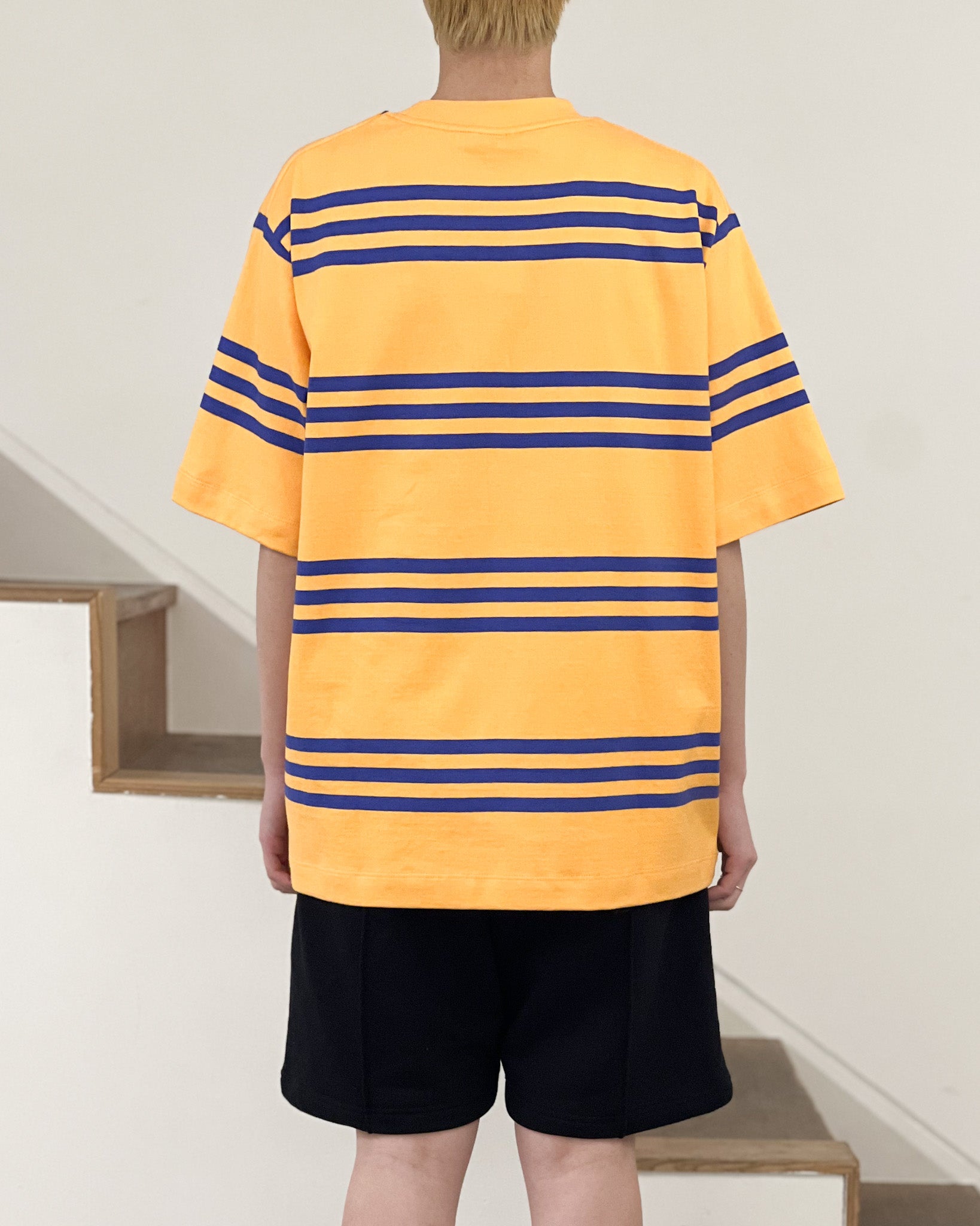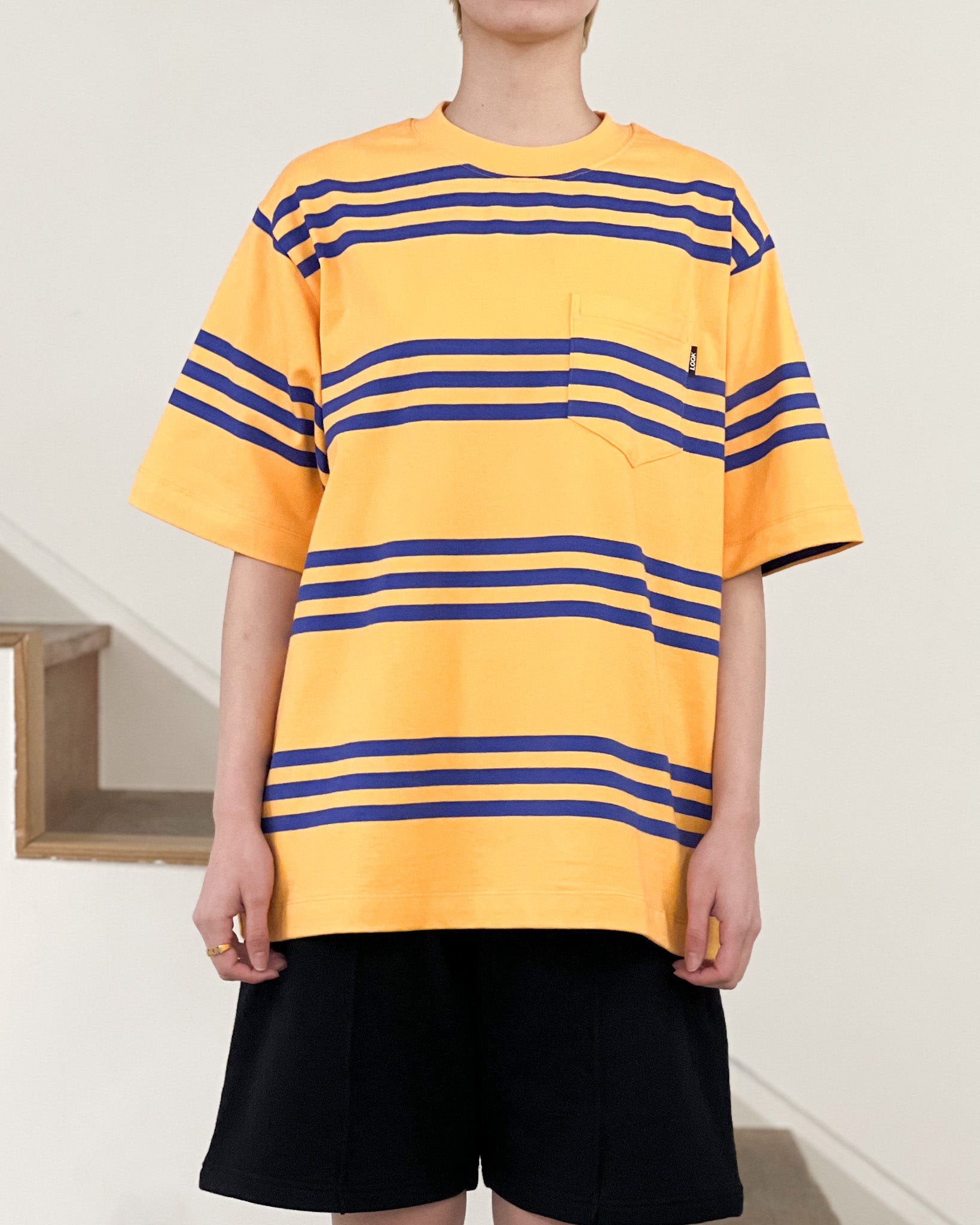 [LQQK STUDIO] S/S RUGBY WEIGHT POCKET TEE - ORANGE×NAVY