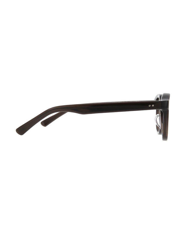 太セルと呼ばれるトレンドとは一線を画す程よい存在感に、重厚になってしまいがちな8mm厚のアセテート材を使いトップラインとボトムラインで削り落としの手間を加え、鯖江の職人による丁寧なバフ磨きで高級感も秀逸。