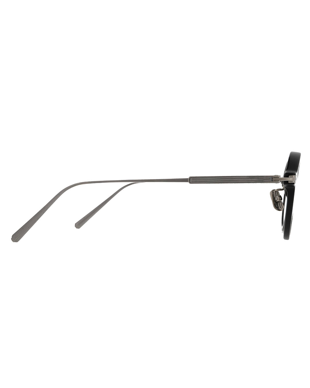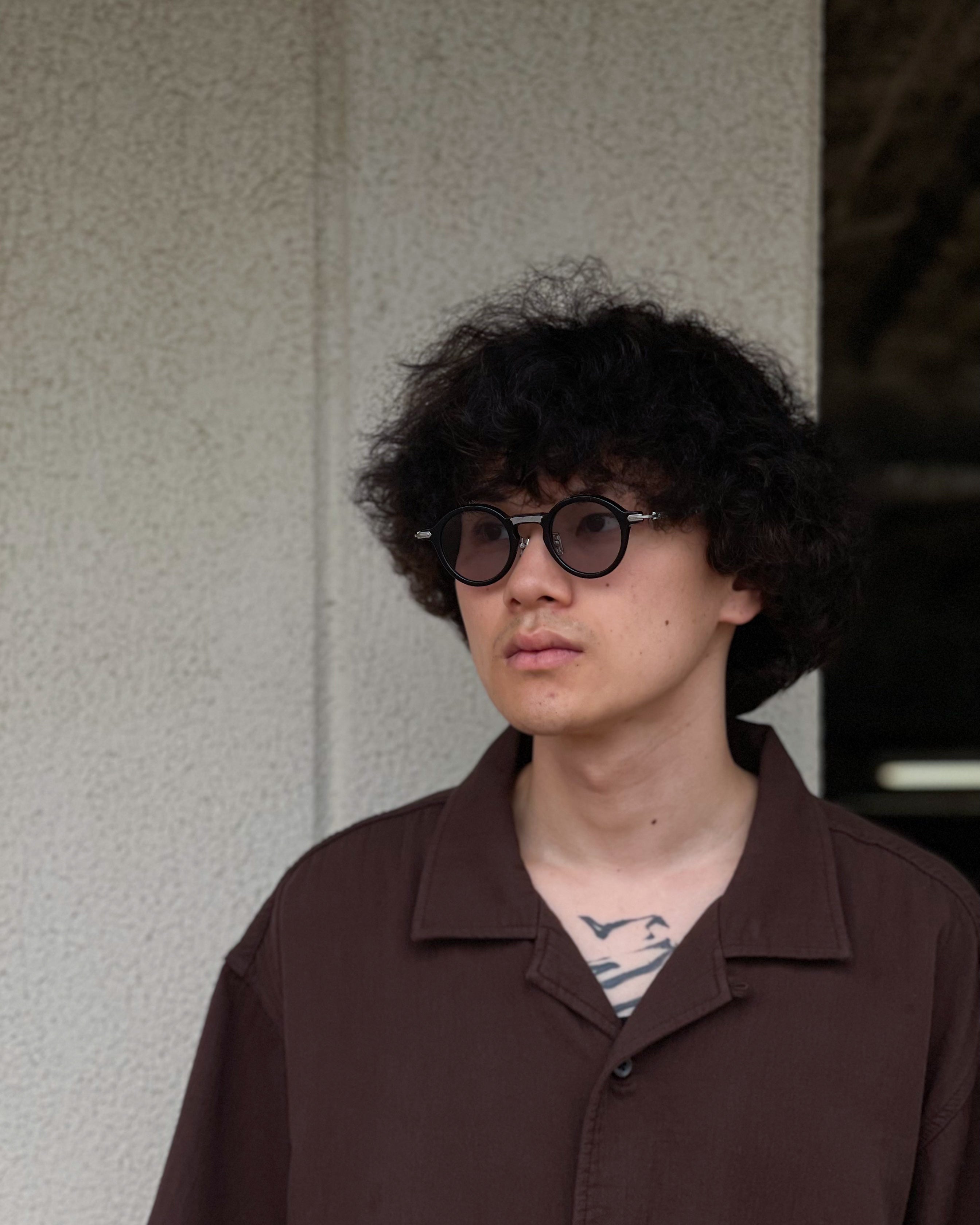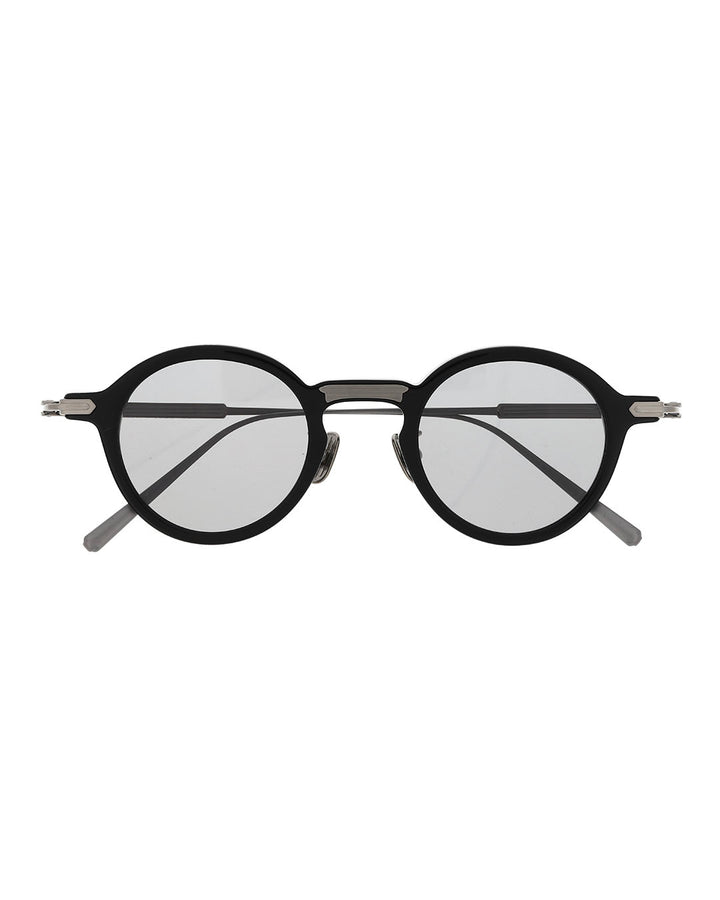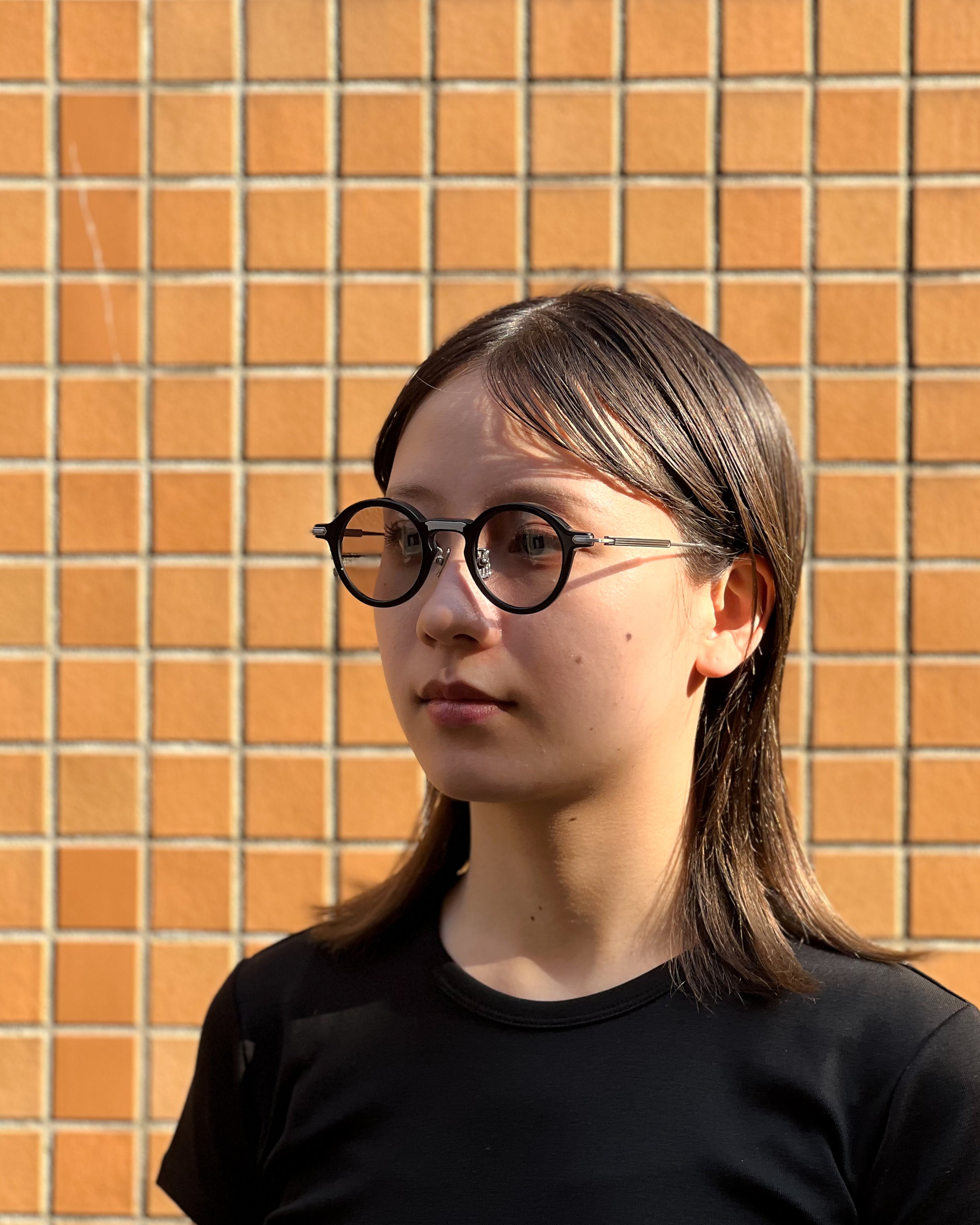 The round-shaped " 15/03 " is an updated version of the " M150 " series by MEN'S CLUB, a brand that designed and produced in the 1980s . The titanium parts of the bridge design have been given a matte finish compared to the previous 15 series, giving the overall design a more subdued look. The new mechanism takes into consideration the wobbling of the screw-fastened parts that occurs when wearing combination frames for long periods of time, a gimmick that can only be achieved with 40 years of history. The lenses use a two-curve design that is a remnant of the glass era.