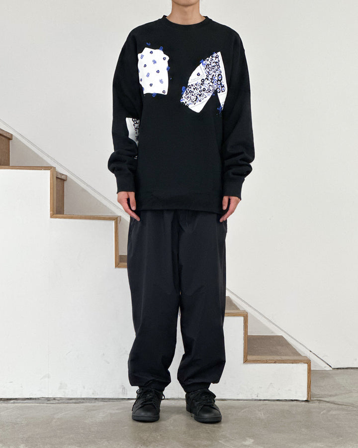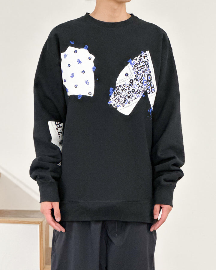 Draw Your Garden is one of NOMA td's signature patterns. A crew neck sweatshirt with a pattern that looks like SIGNAL, with only parts of the pattern printed here and there.