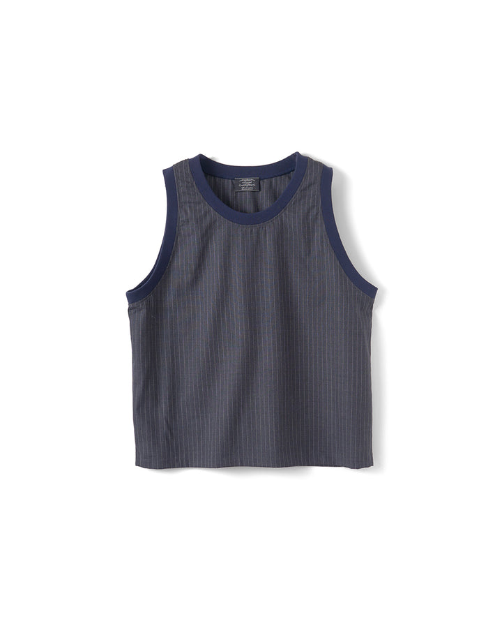 現場仕事で役割ごとに色の違うビブスを渡されていた事をきっかけに制作。生地はウールトロのストライプ素材を使用しており、Tシャツやシャツの上にサラッと重ねやすい一着になっています。