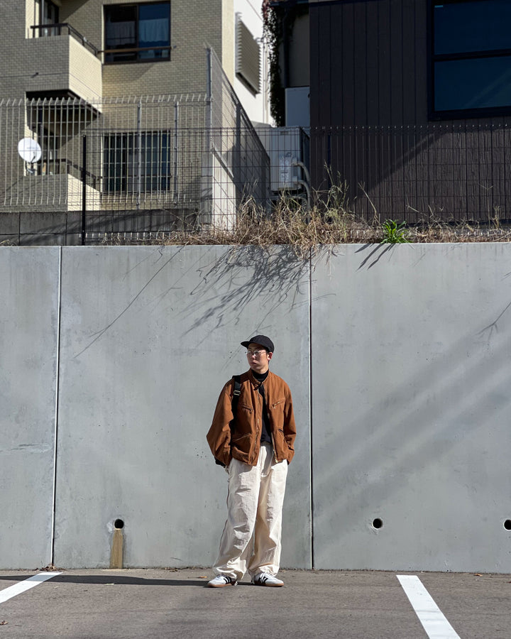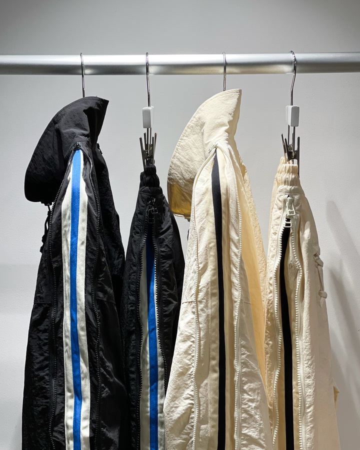 "Yakke" is worn on rainy days at work sites. Originally the word means "jacket," but it made an impression on me when craftsmen used the term "yakke" to refer to all rain gear, regardless of whether it was outerwear or pants, so we decided to make it.