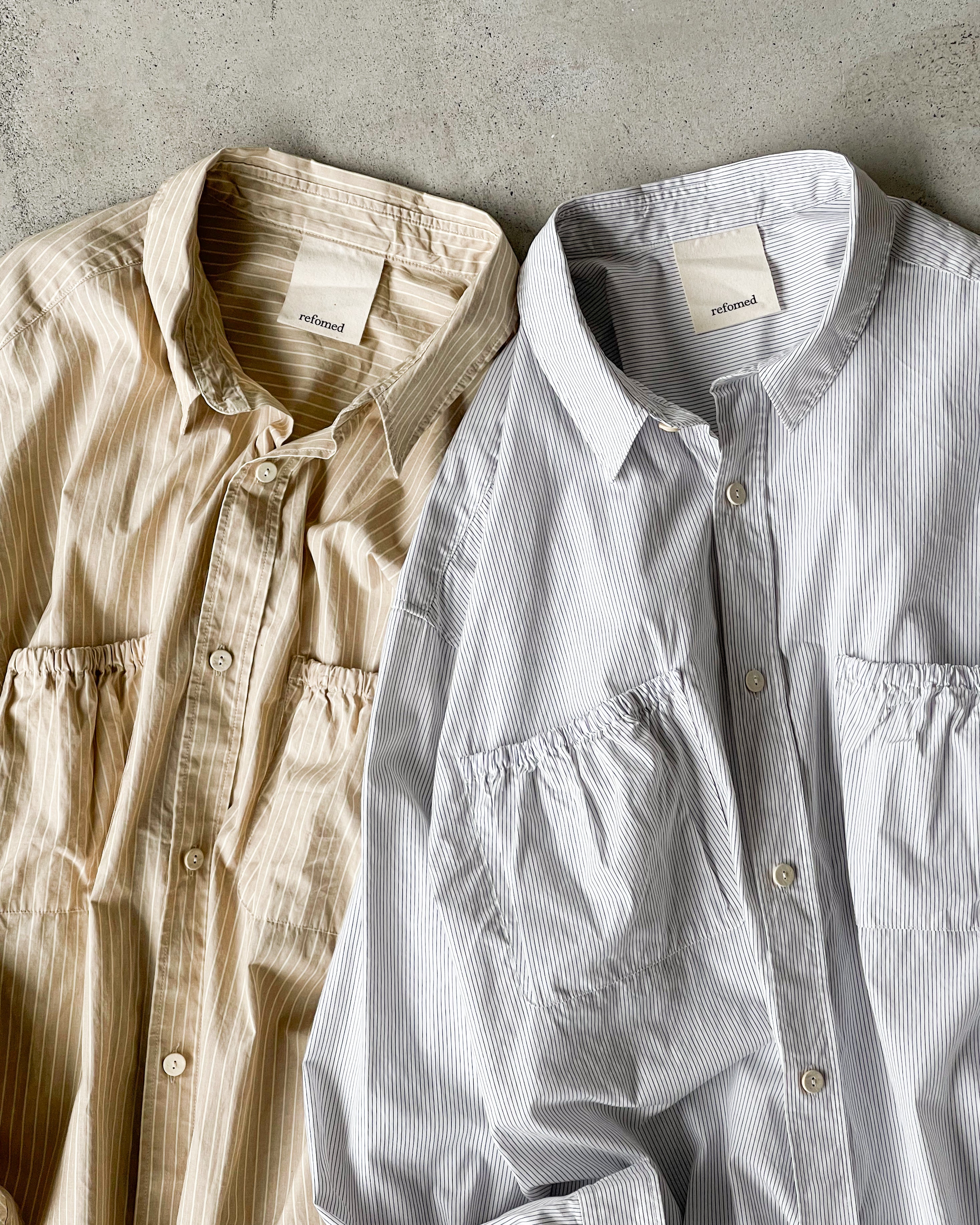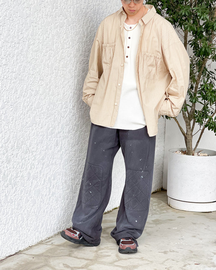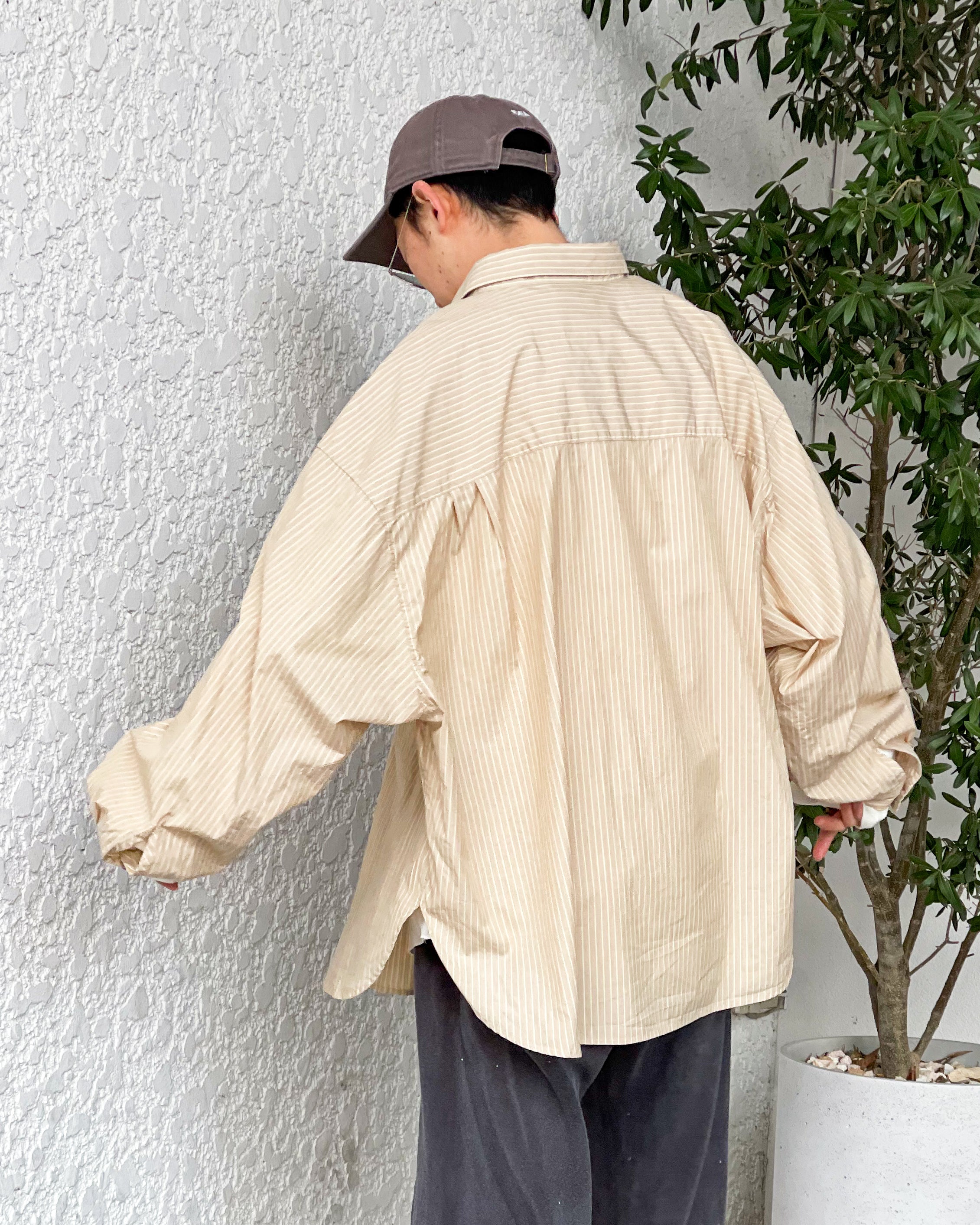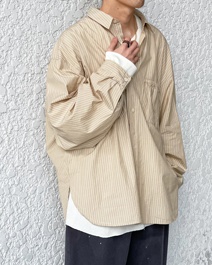 [REFOMED] WRIST PATCH WIDE SHIRT “STRIPE” - BEIGE