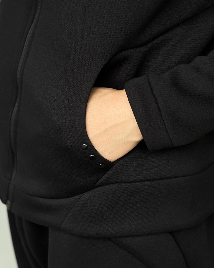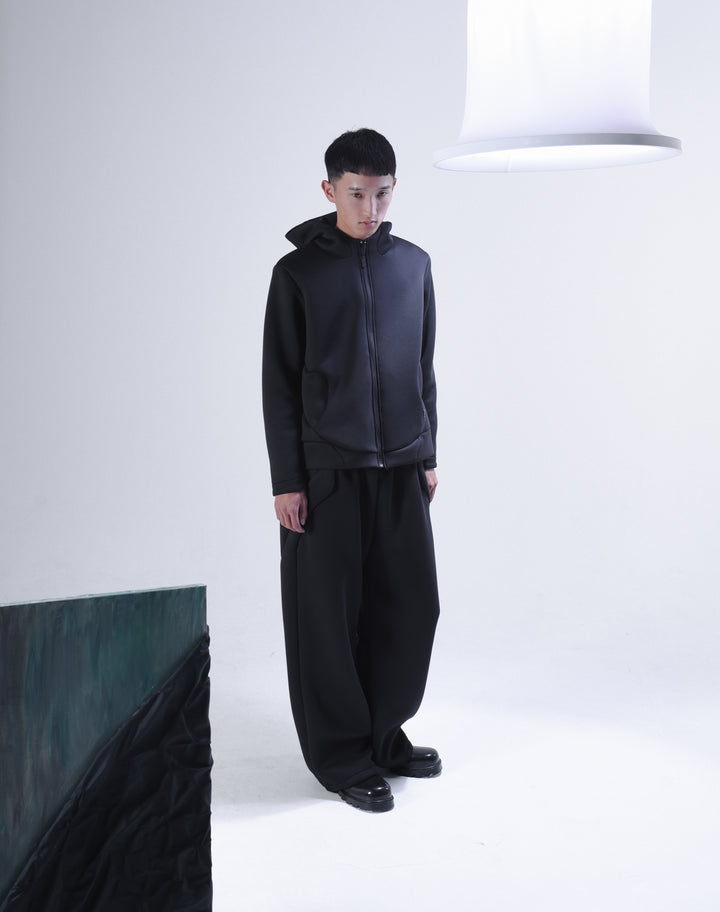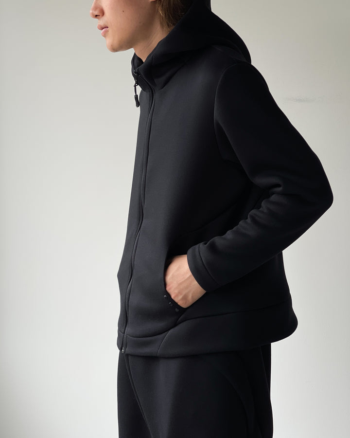This set-up item is inspired by insects and nature, and features panel switching and a silhouette with ryaw-like curves. The pockets of the zip hoodie are decorated with original studs.