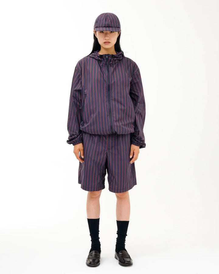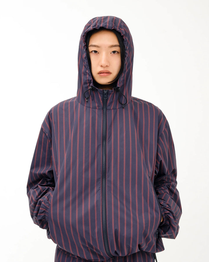 [SOL] STRIPE NYLON HOODED JACKET - NAVY
