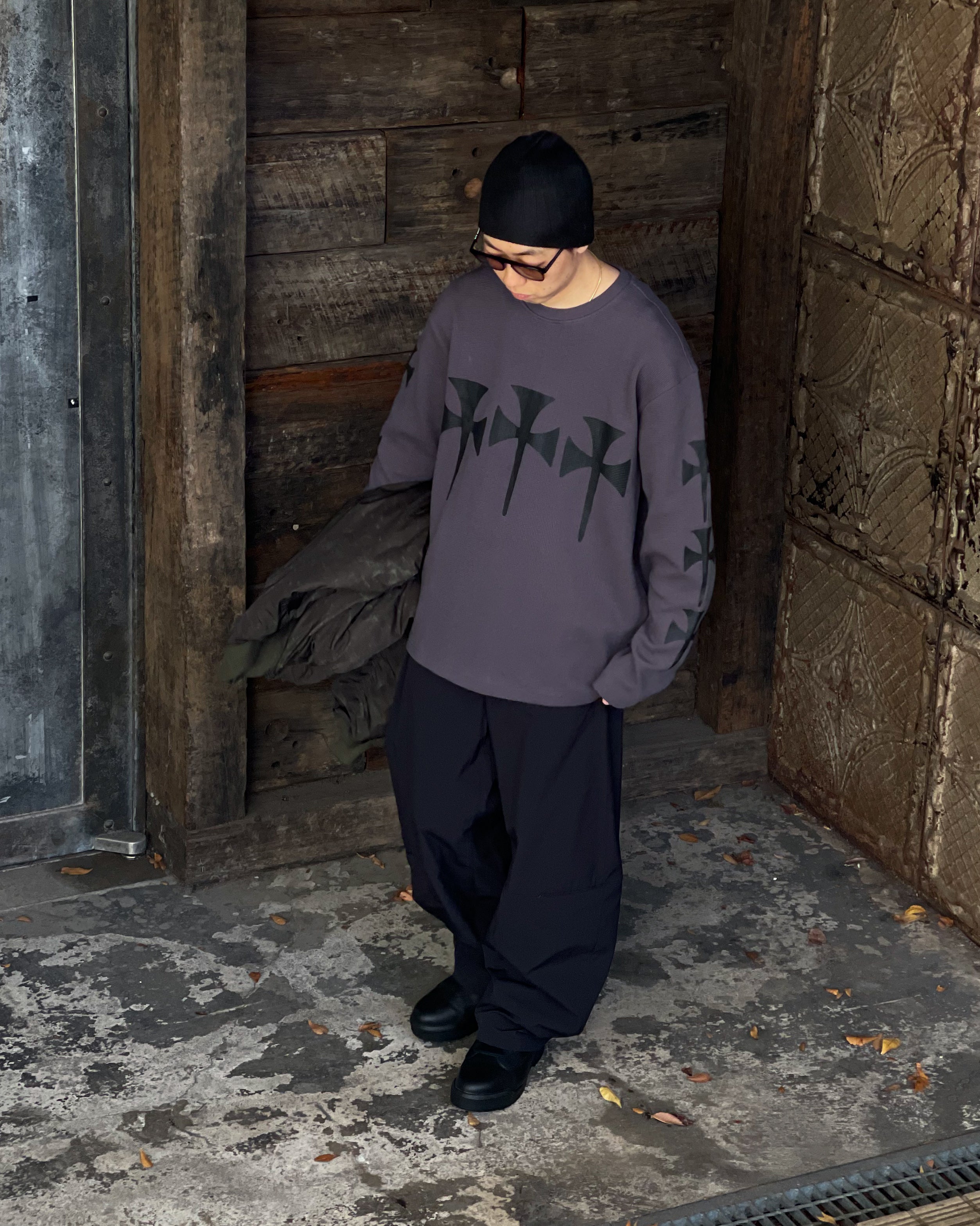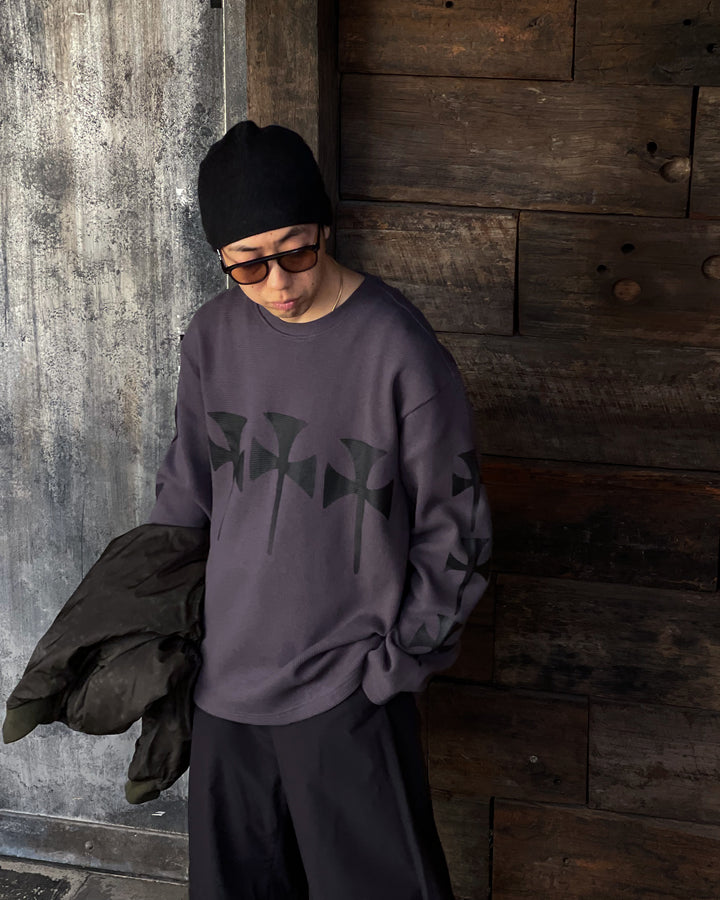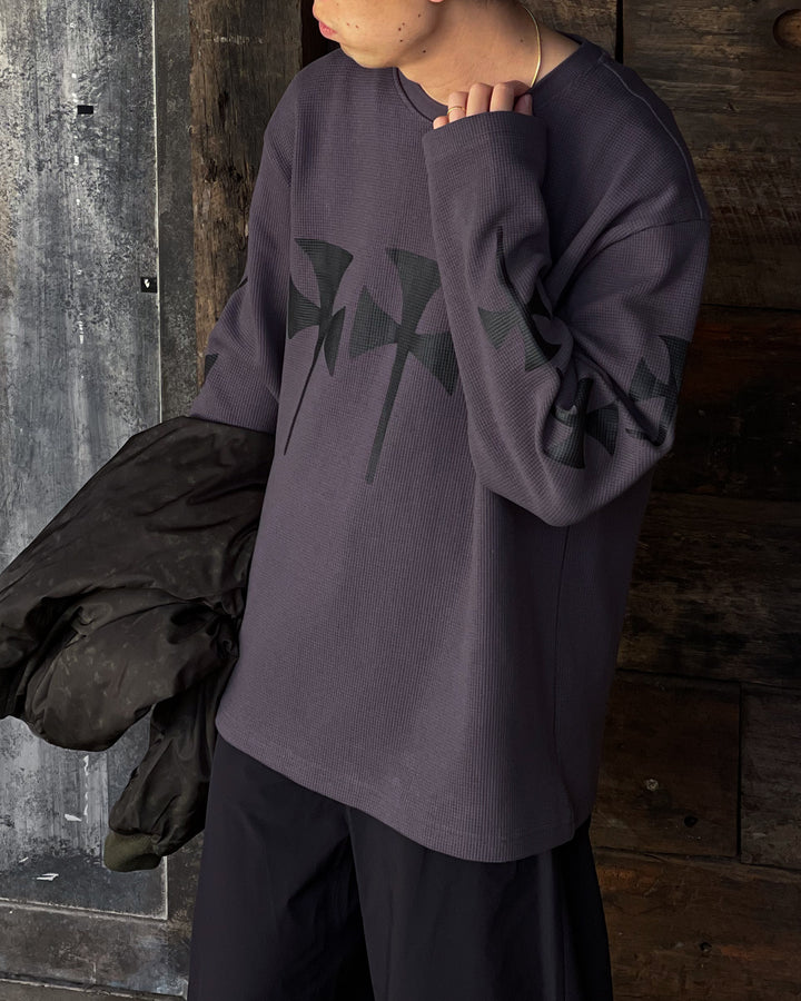 [THE TRILOGY TAPES] TTT THREE CROSS WAFFLE LONGSLEEVE - CHARCOAL/BLACK