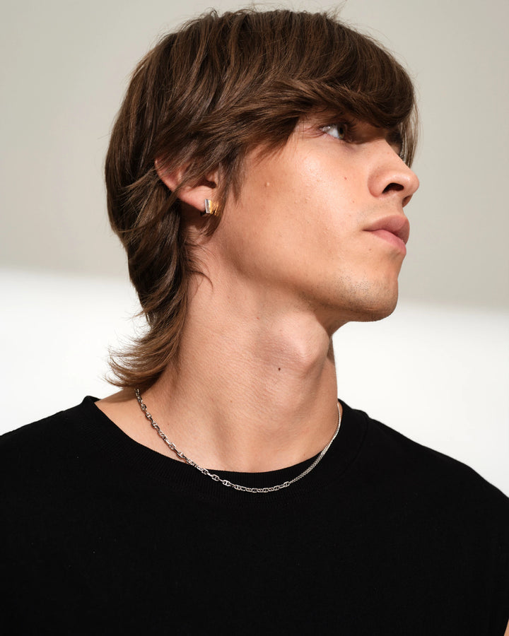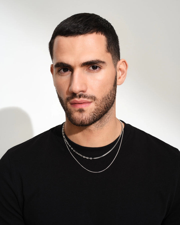 A new design that catches the eye with a combination of two different chains. This is a combination of "SILVER CABLE" and "SILVER CURB", and is a new attempt by TOM WOOD, who has often produced simple and classical designs.