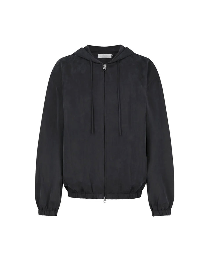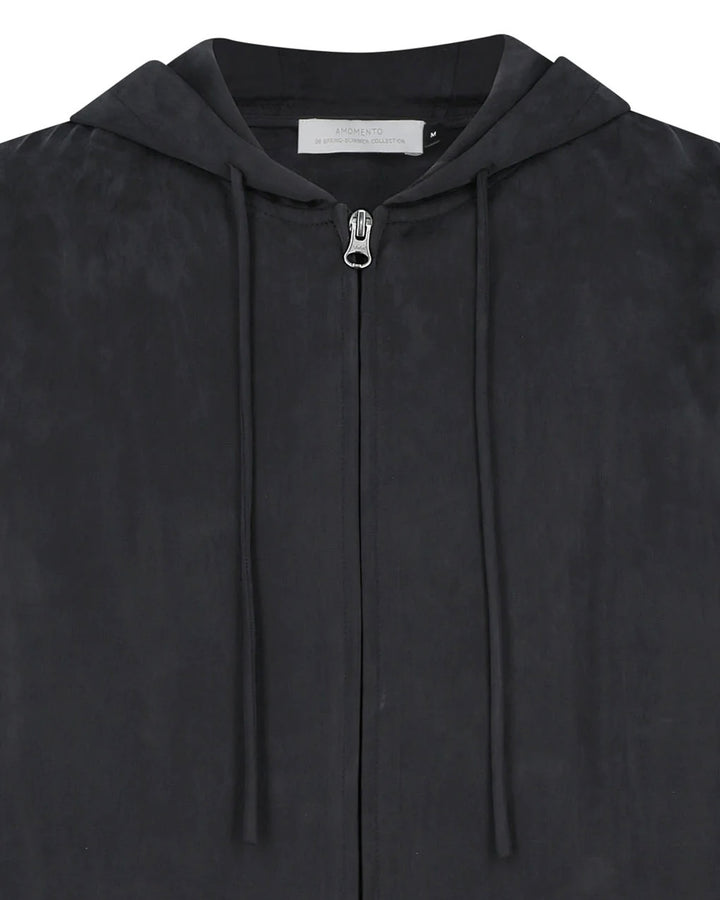 【AMOMENTO】CUPRO HOOD ZIP UP JUMPER - BLACK