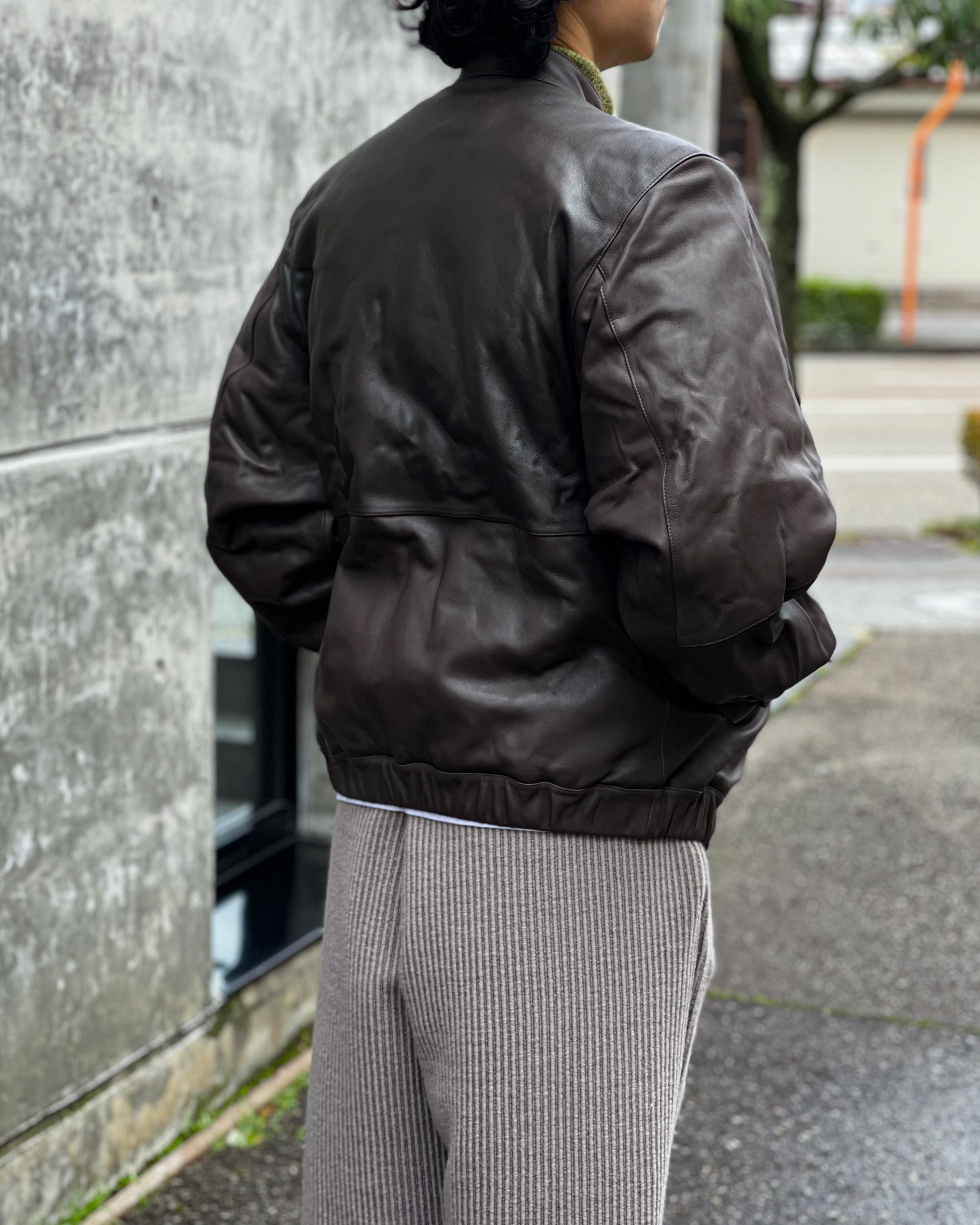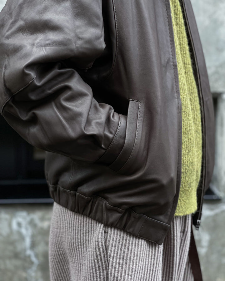 【AMOMENTO】LAMBSKIN LEATHER BLOUSON - BROWN