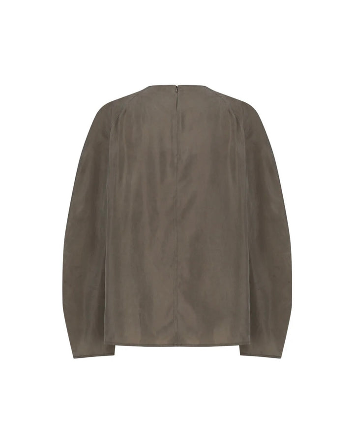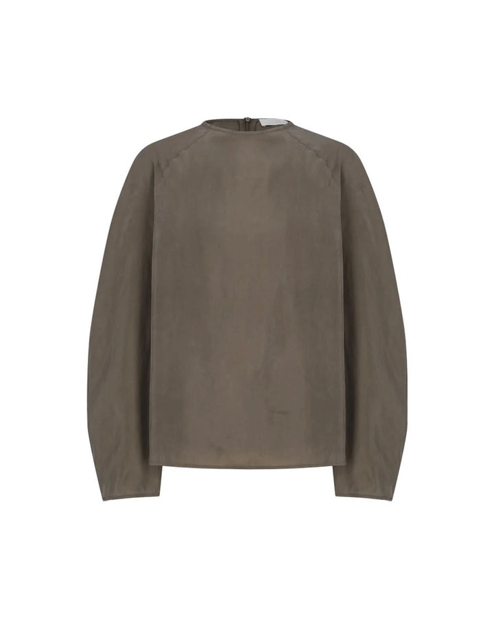柔らかく上品な光沢のキュプラ ラグランスリーブトップ。