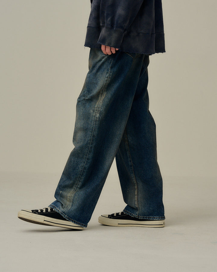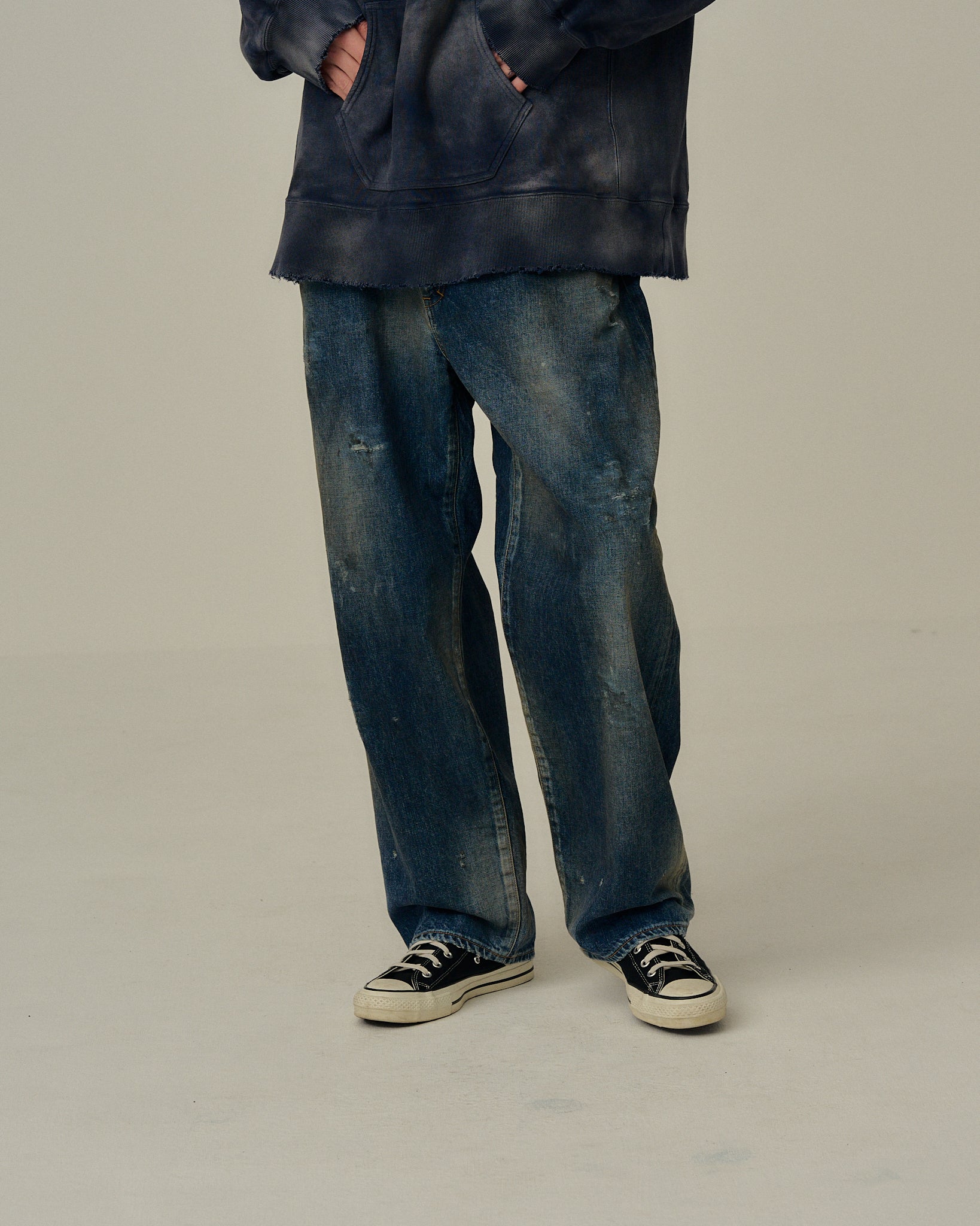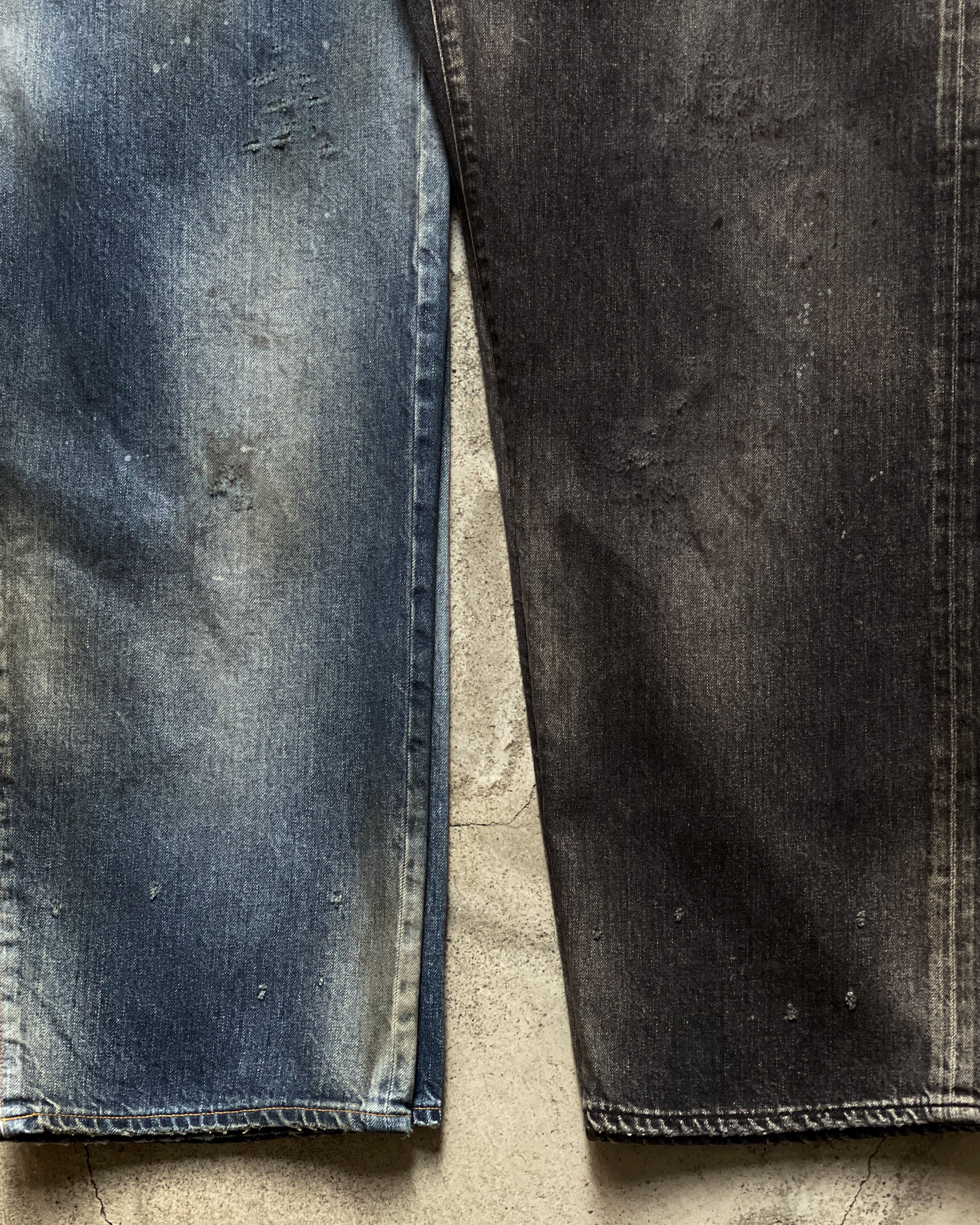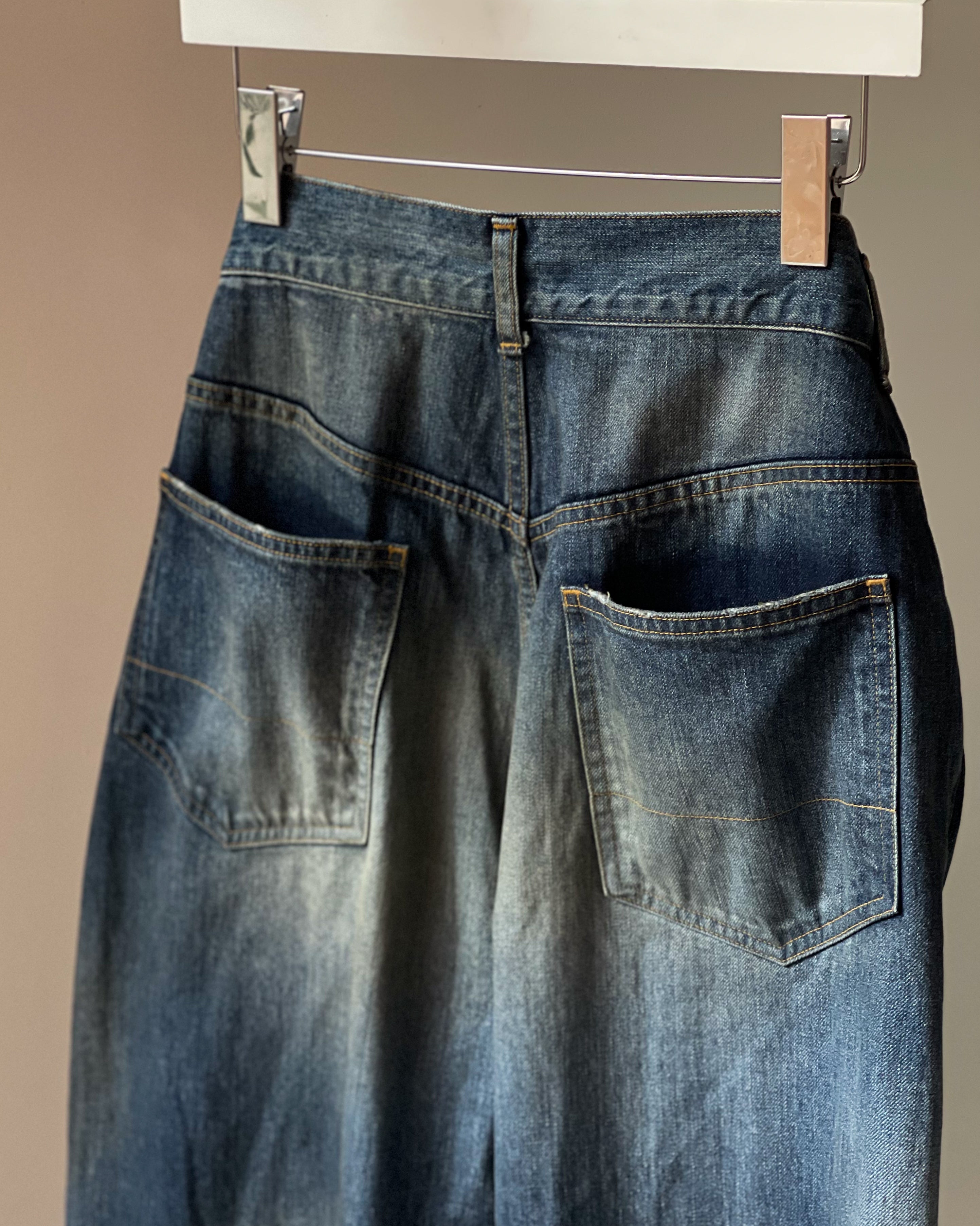 ミリ単位でパターンを整えながら上半身とのバランスやシューズへの乗り方、全身としての見え方を細かく追求。今作はやや濃色で色を残しながら整えることでオーセンティックなムードの中に 、淡色・中色・濃色それぞれのレイヤーで色気をえるよう独自調合の色を載せることでANCELLMらしい個性のある一本になってます。