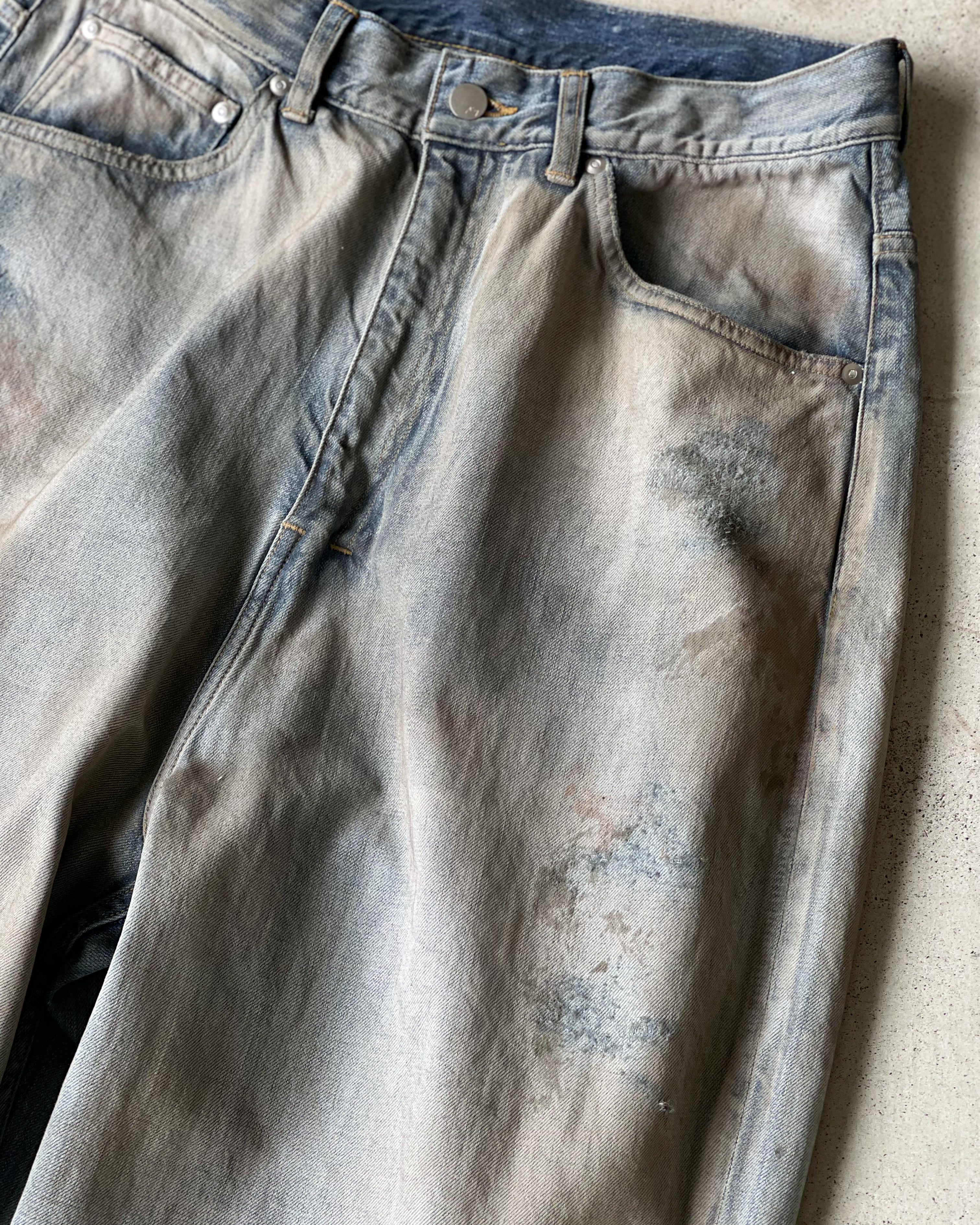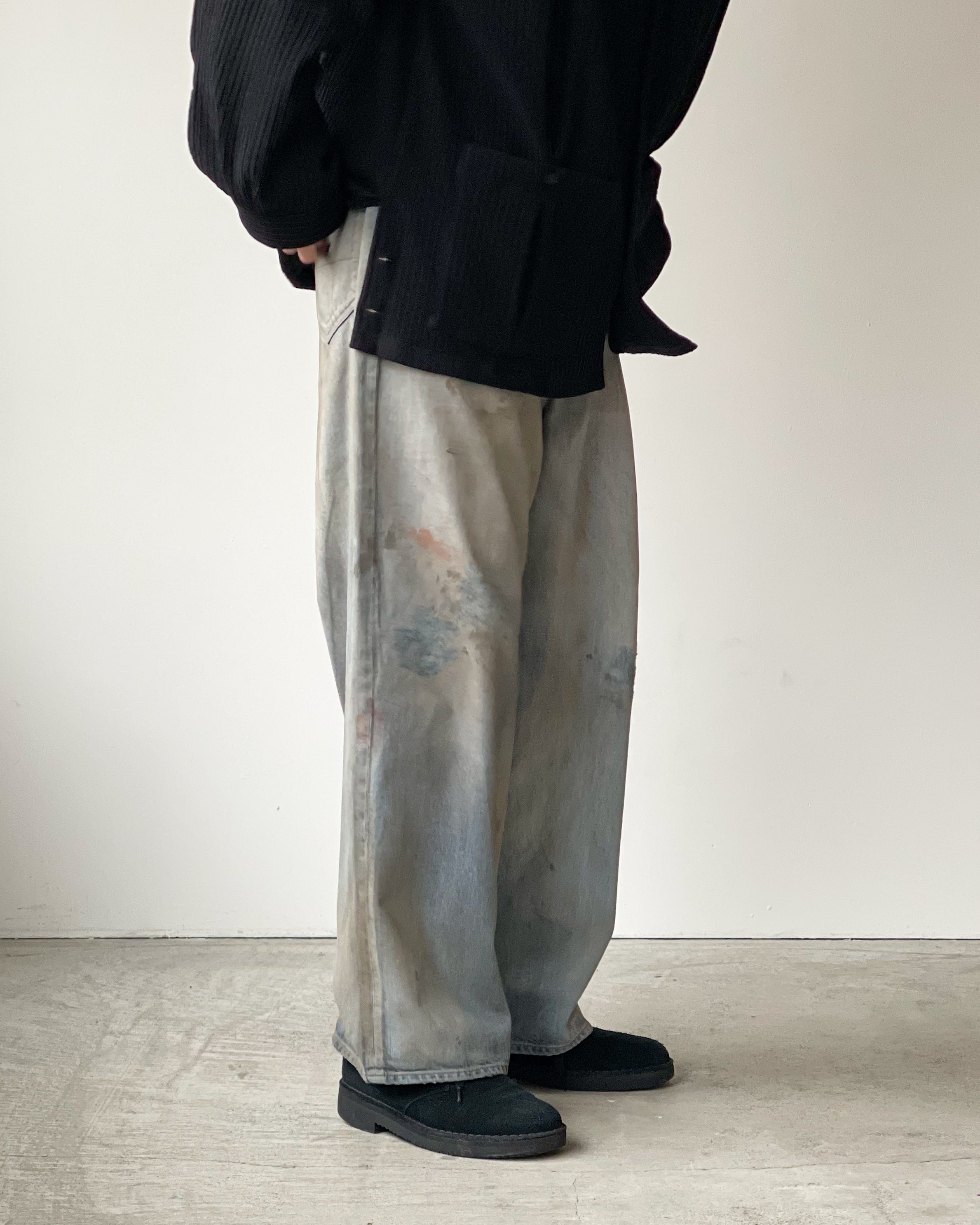 迫力のある太さながら、着用時にはとても綺麗な収まりの美シルエット。今作はINDIGOとBLACKの定番カラーに加えて春夏らしい涼しげなWHITEの3色でご用意しております。
