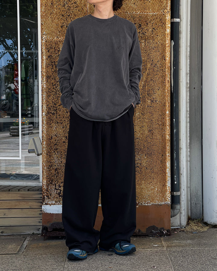 【ANCELLM】EMBROIDERY DYED LS T-SHIRT - F.BLACK
