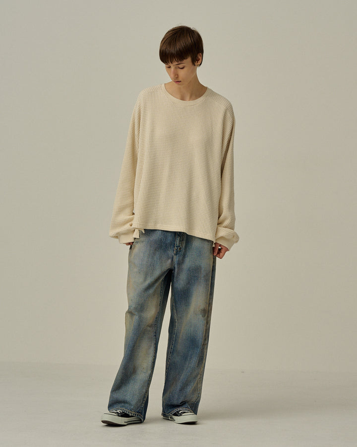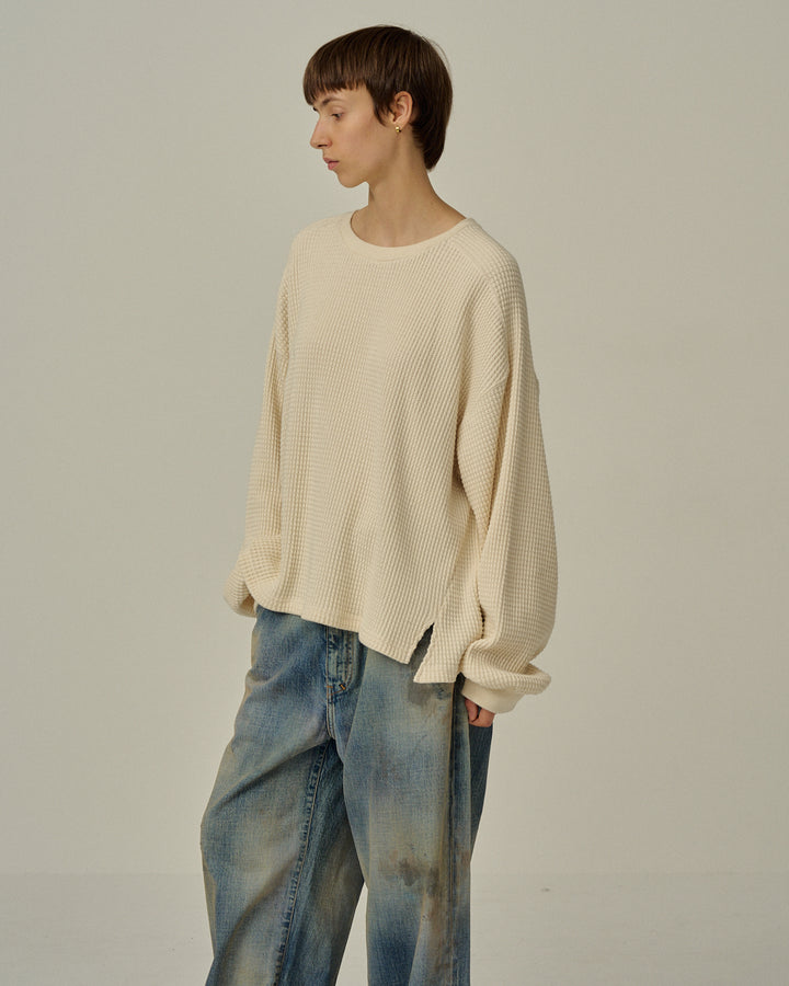 【ANCELLM】HEAVY WAFFLE OVER LS - IVORY