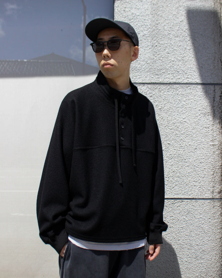 【ANCELLM】HENLEY PULL OVER SHIRT - BLACK