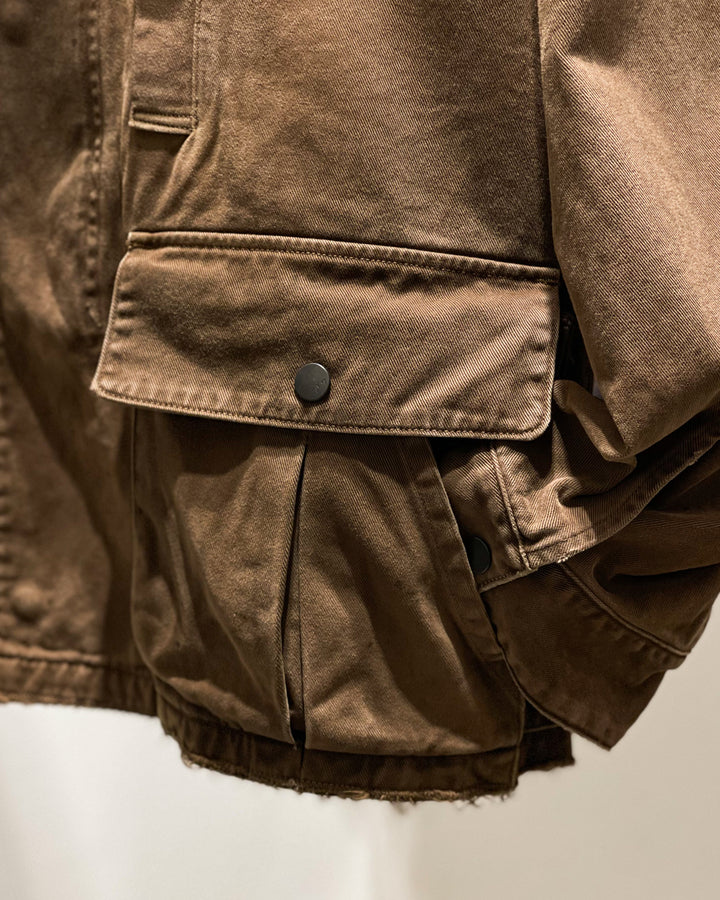 【ANCELLM】HIGHCOUNT DRILL AGING JACKET - BROWN