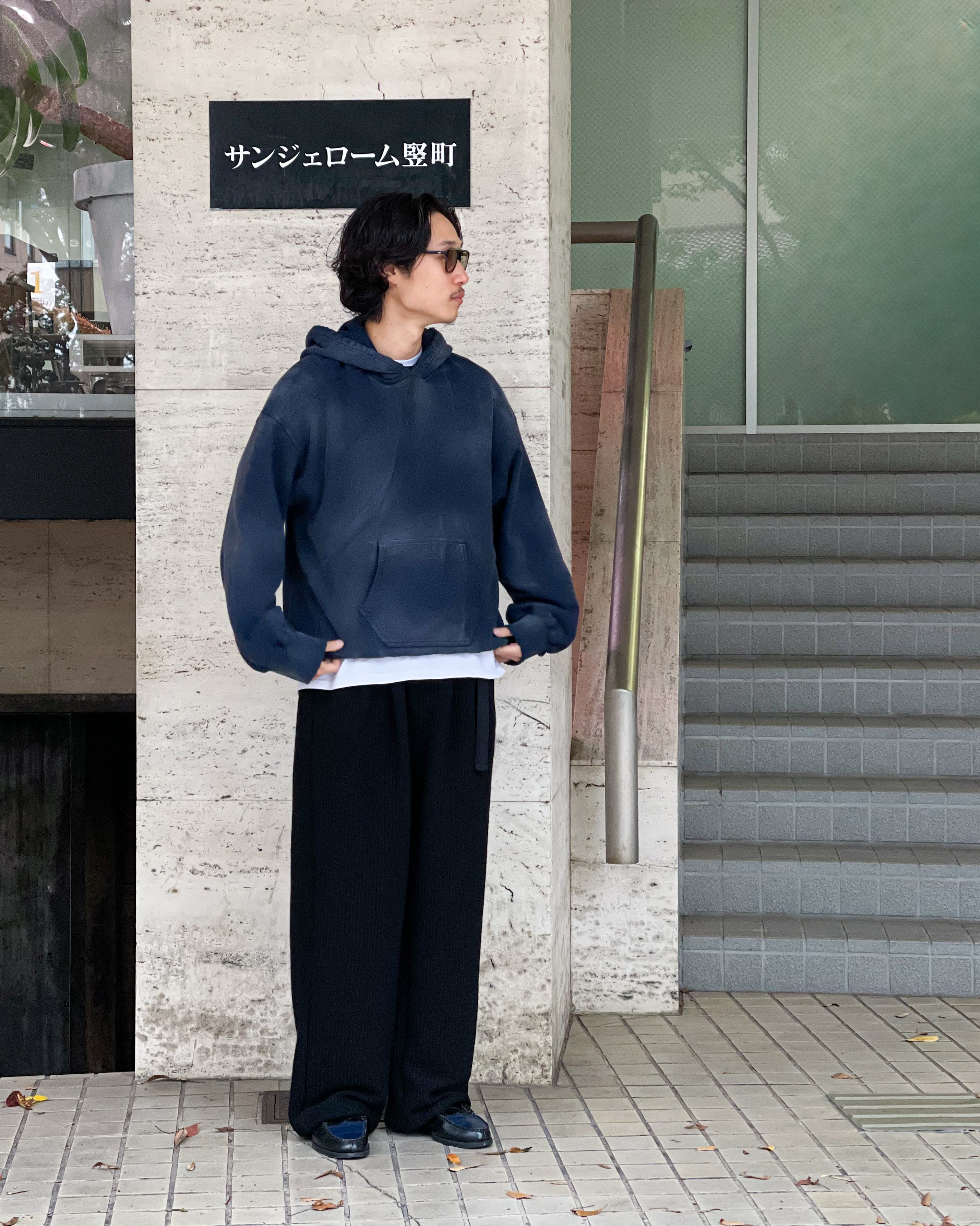 ANCELLM 2025 AUTUMN/WINTER 10th Deliveryより、独自の染色技法と加工から生み出した、雰囲気のあるグラデーションが美しいスウェットフーディ。