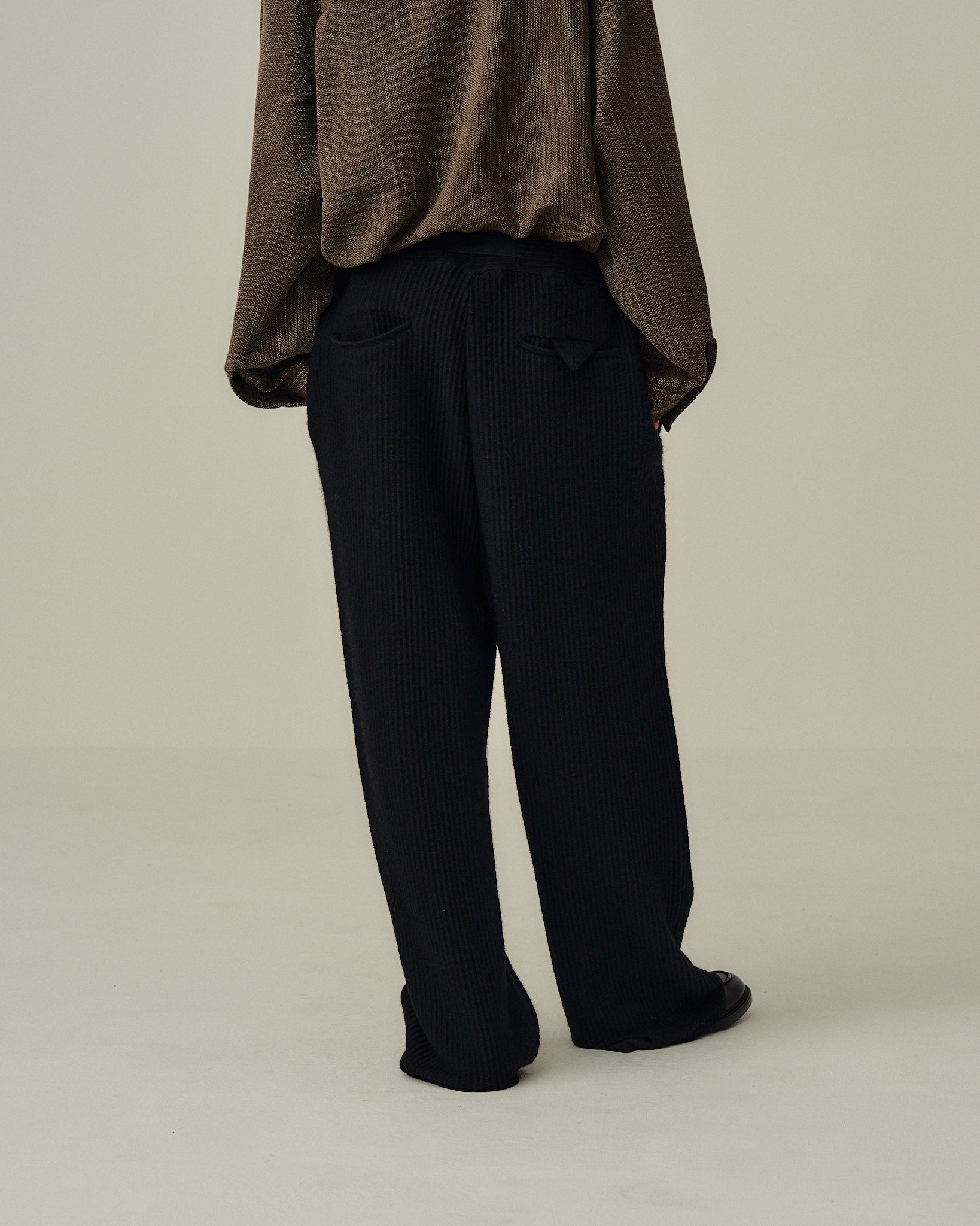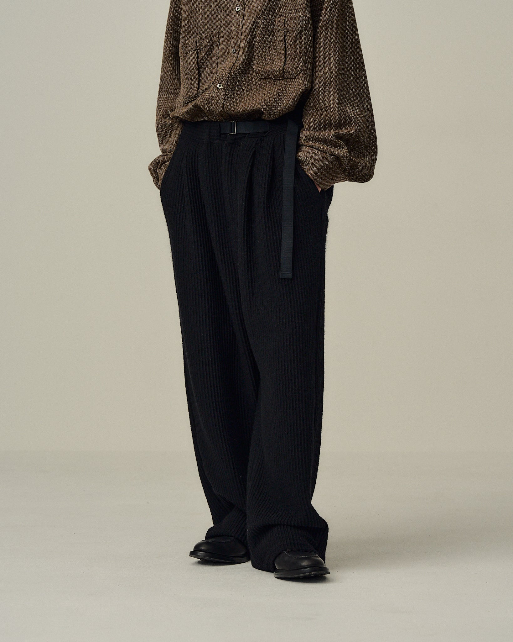 【ANCELLM】WOOLCORD BELTLESS SLACKS - BLACK