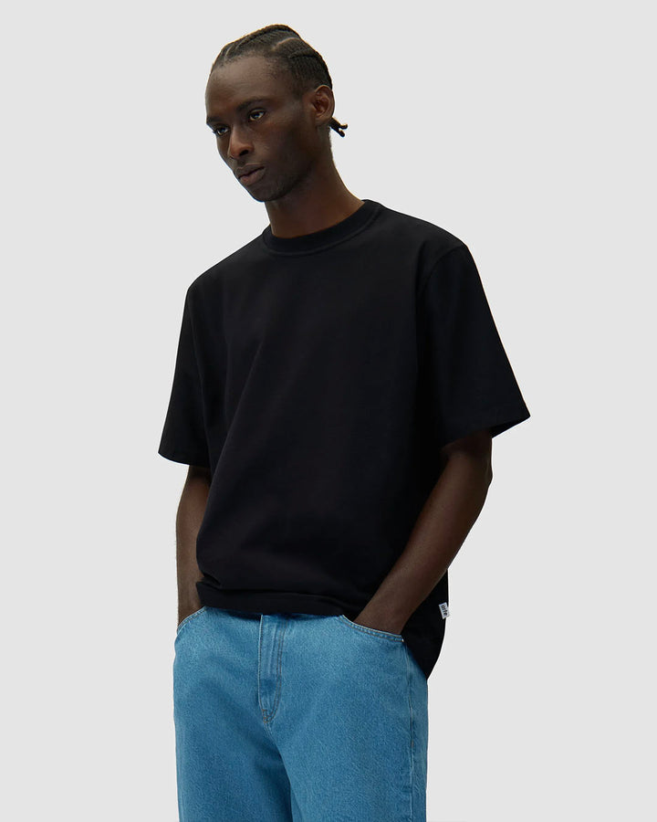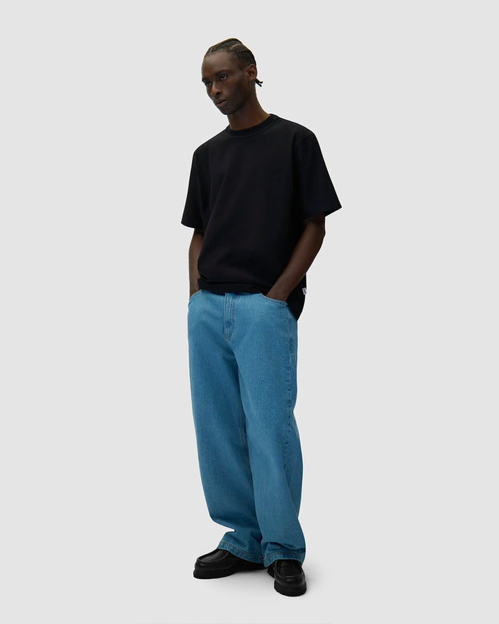今季のコレクションテーマの象徴的な“EYE LOGO“をバックに大胆にスクリーンプリントしたS/S TEE。上質なヘビーウェイトコットンボディで、やや高めのネックラインとリラックスしたフィットになっており、ソフトな着心地も特徴。