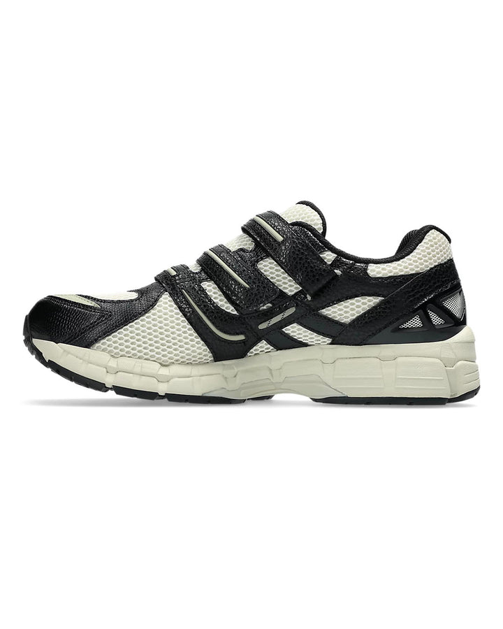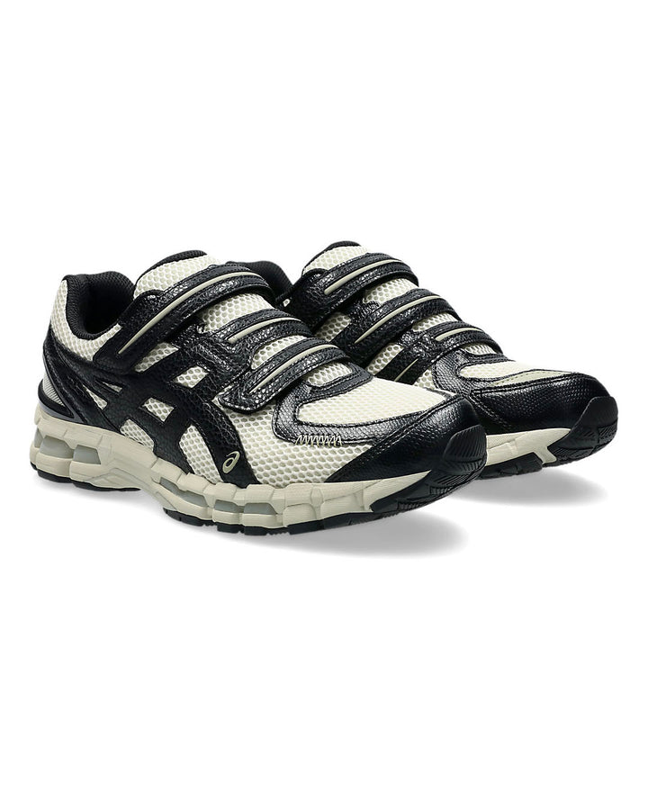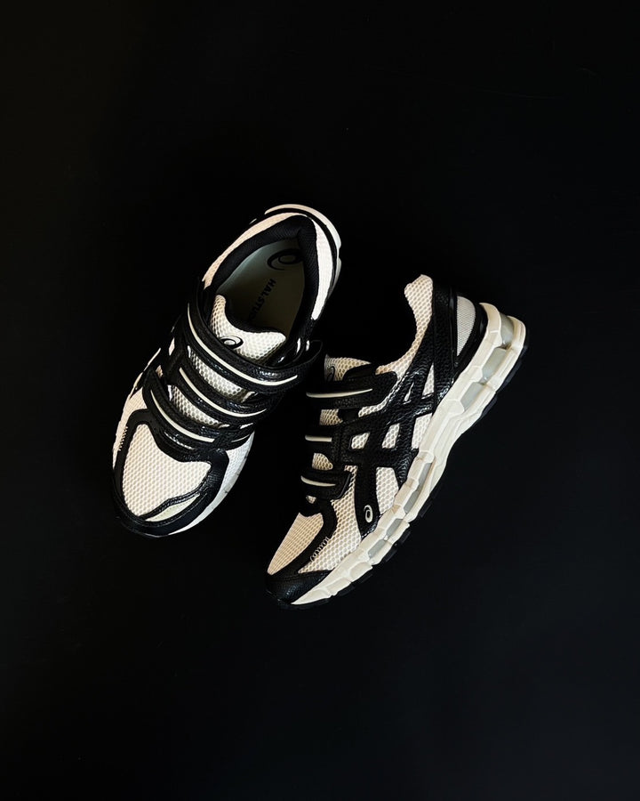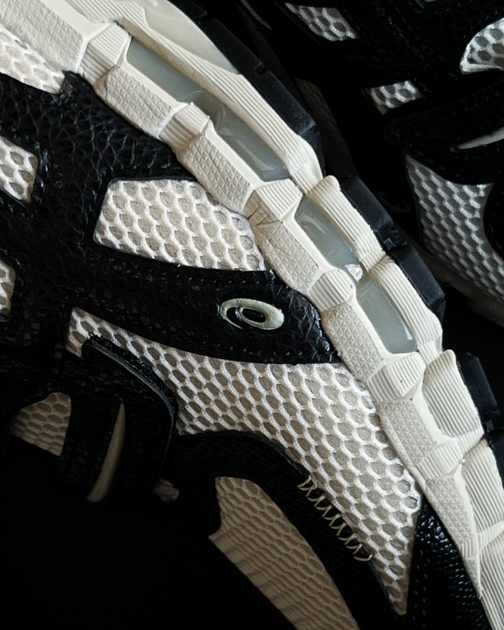 今回のベースには、ランニングシューズとして安定性とクッション性が特徴のGEL-KAYANOシリーズから2013年に登場したGEL-KAYANO 20を採用。1950年代から1960年代にかけて流行した“Space Era(宇宙時代)”に由来する革新的なデザインランゲージにインスピレーションを受け、伝統的なシルエットをモダンで、デザインオブジェのようなライフスタイルシューズへと昇華した。ベルトタイプによるクロージングシステムを取り入れ、目の粗いメッシュやレザーによる素材のコントラストが当時の革新性を表現。