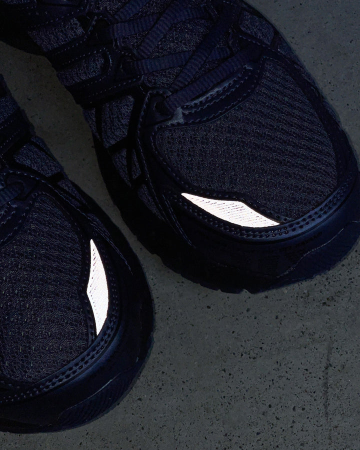 こちらは濃淡の異なるブルーグレーをベースにブラックを要所に加えることで、モダンで洗練された印象のINDIGO FOGカラー。メンズ、レディース共に春に向けておすすめの一足です。