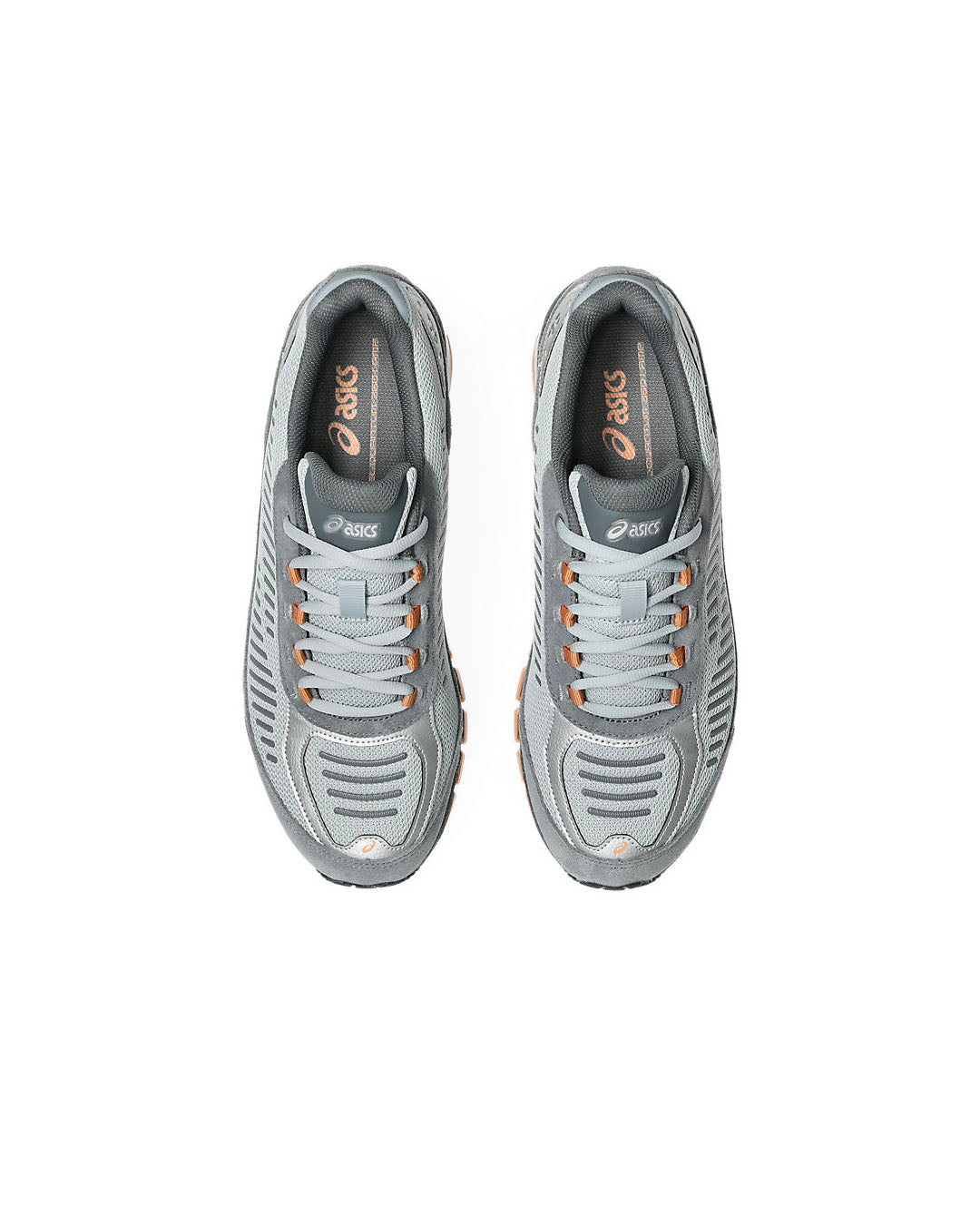 都会的で洗練されたグレーのグラデーションが魅力。アッパーは、濃淡の異なるピエモントグレーとスティールグレーで構築され、モダンな陰影を生み出している。クリアな"GEL"ユニットや、シューレースループ、アウトソールの一部に配されたオレンジの差し色が遊び心を加えている。