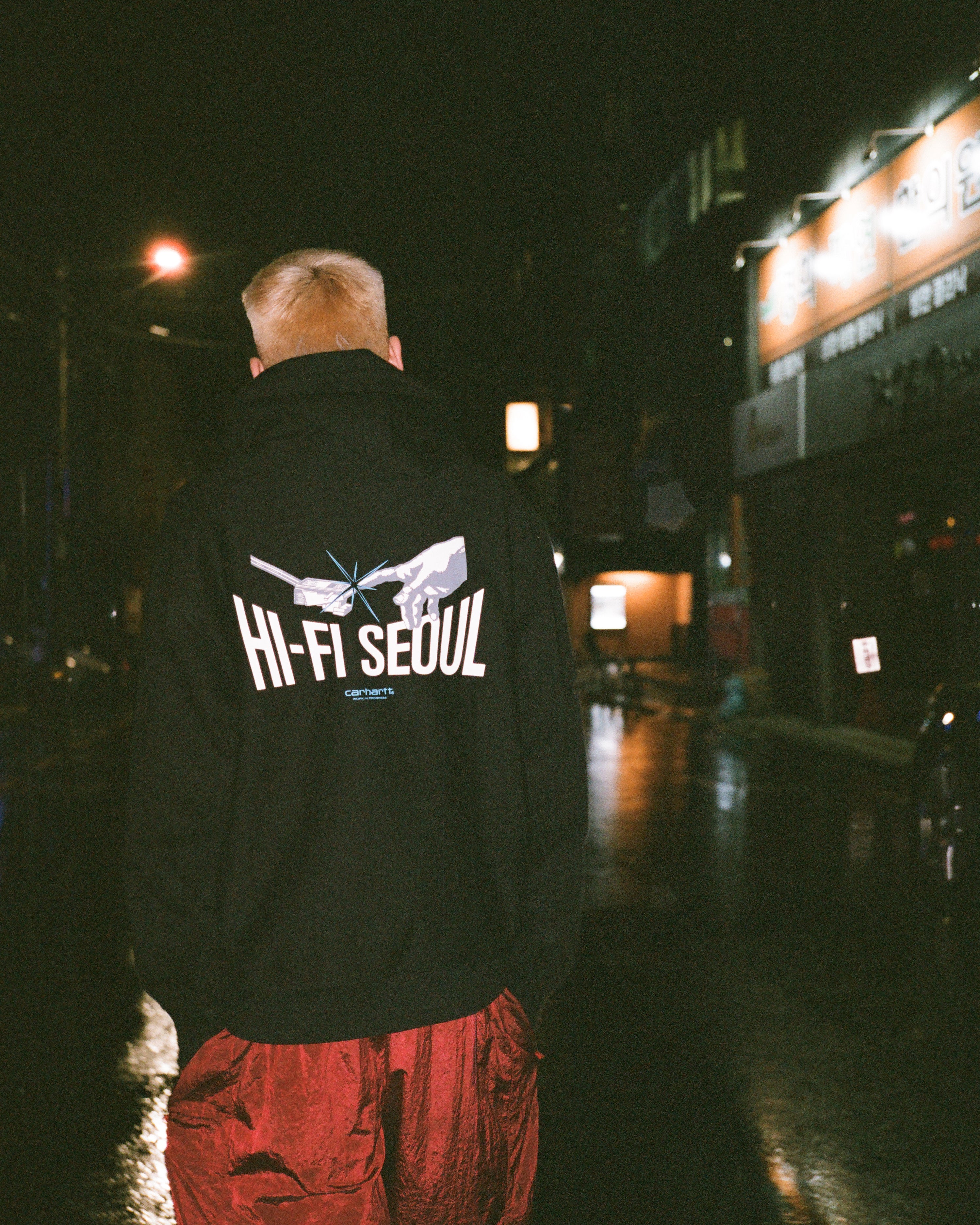 CARHARTT WIPのスウェットフーディーボディをベースに今コラボレーション仕様にアレンジされた1着。フロントは刺繍、バックはシルクスクリーンプリント。