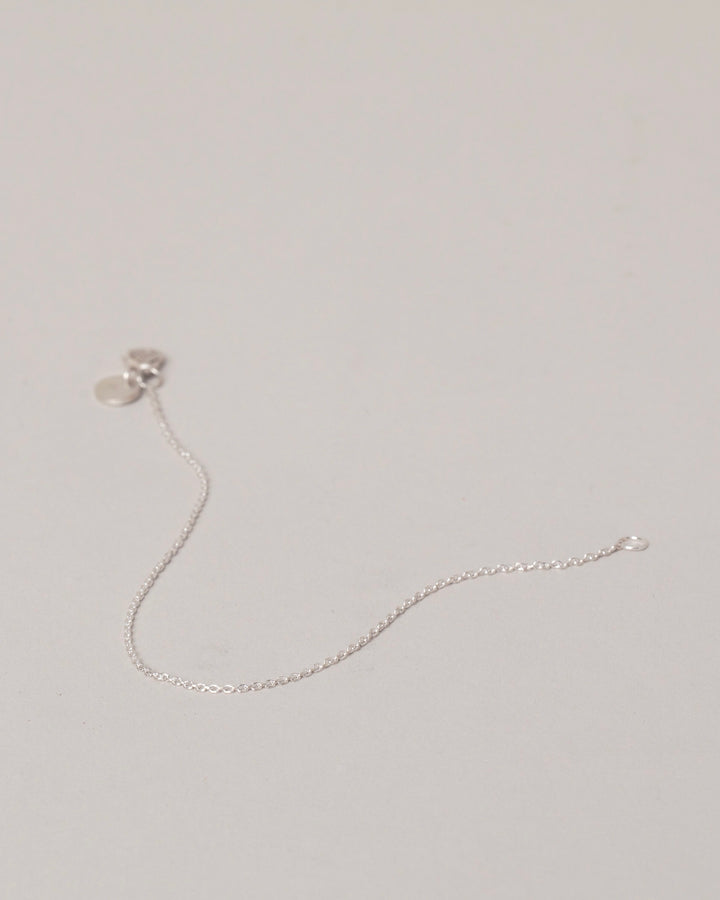 含有率92.5%のいわゆる純銀を使用しています。 繊細なあずきタイプのチェーンで作ったミニマルなブレスレット。スタイル、性別、TPO問わずつけていただけます。他のブレスレットや腕時計と合わせてつけられるミニマルさが魅力。