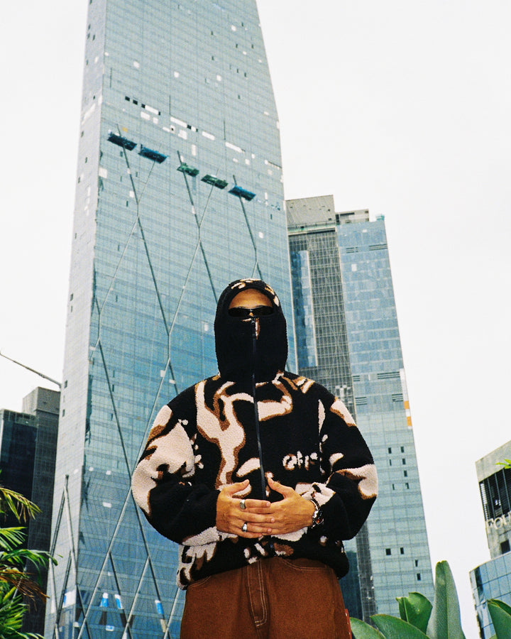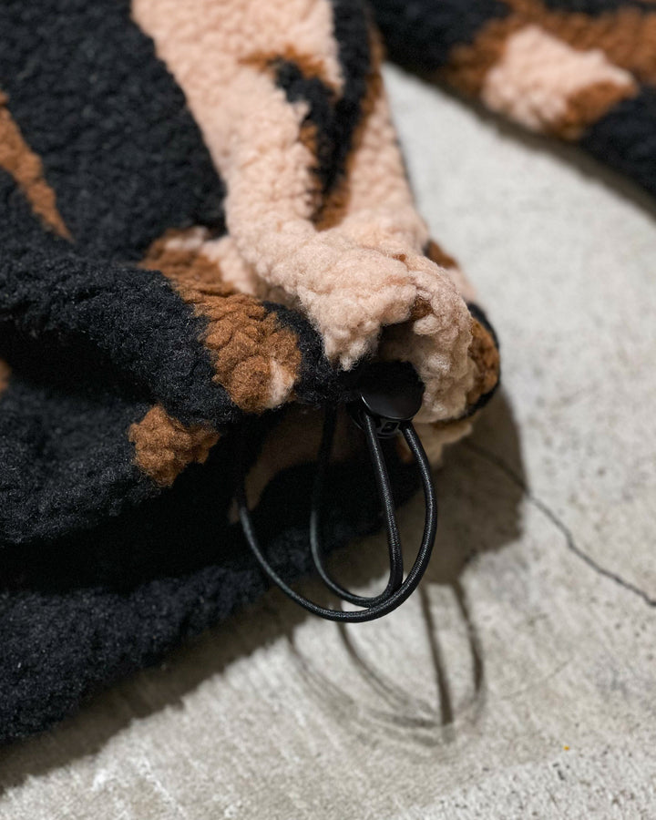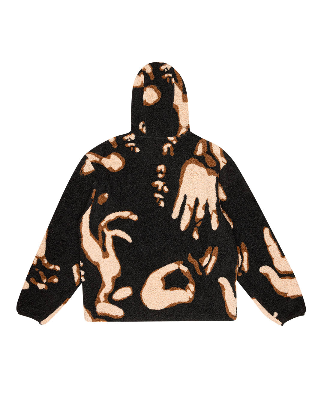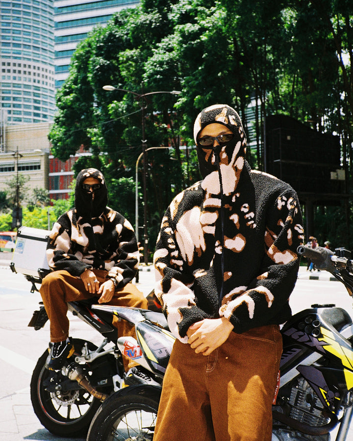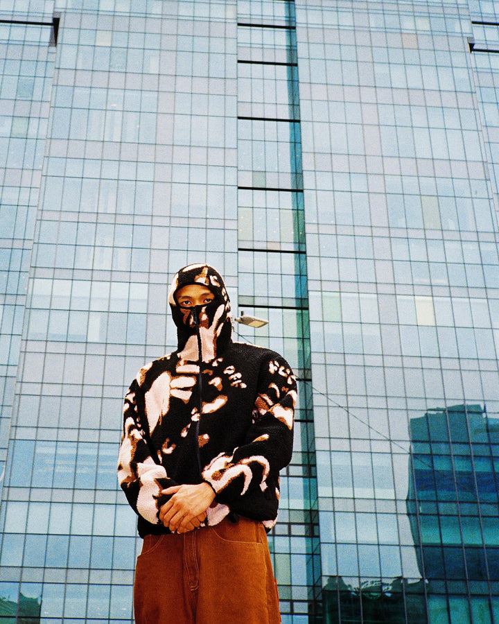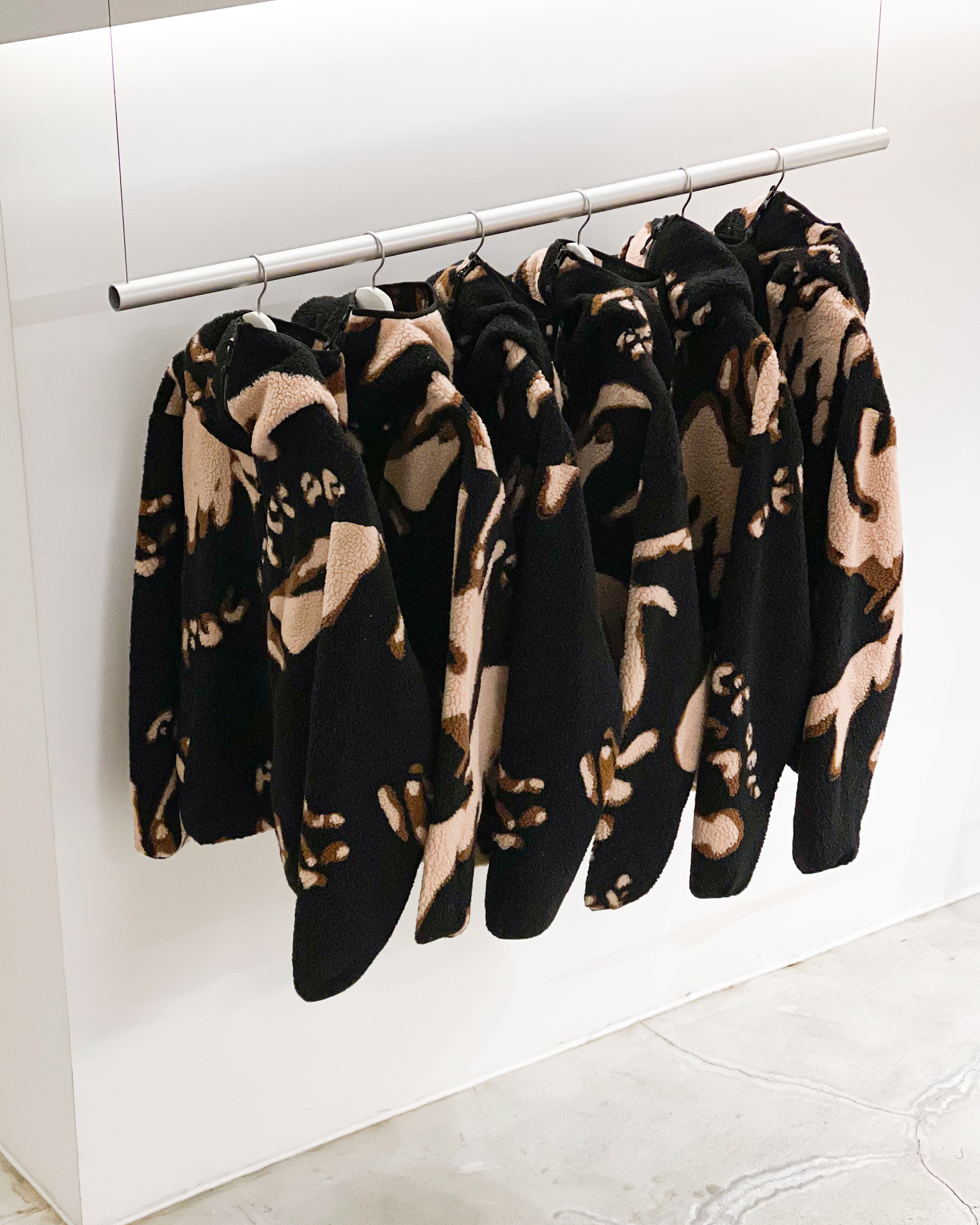 インパクト大の"FUC OFF"モチーフの総柄デザインが目を惹くジップアップのボアフリースジャケット。フロントジップは高めの位置設定になっており、フードを被るとバラクラバのようなテンションで使える仕様に。この時期から春先までしっかり活躍する一着です。