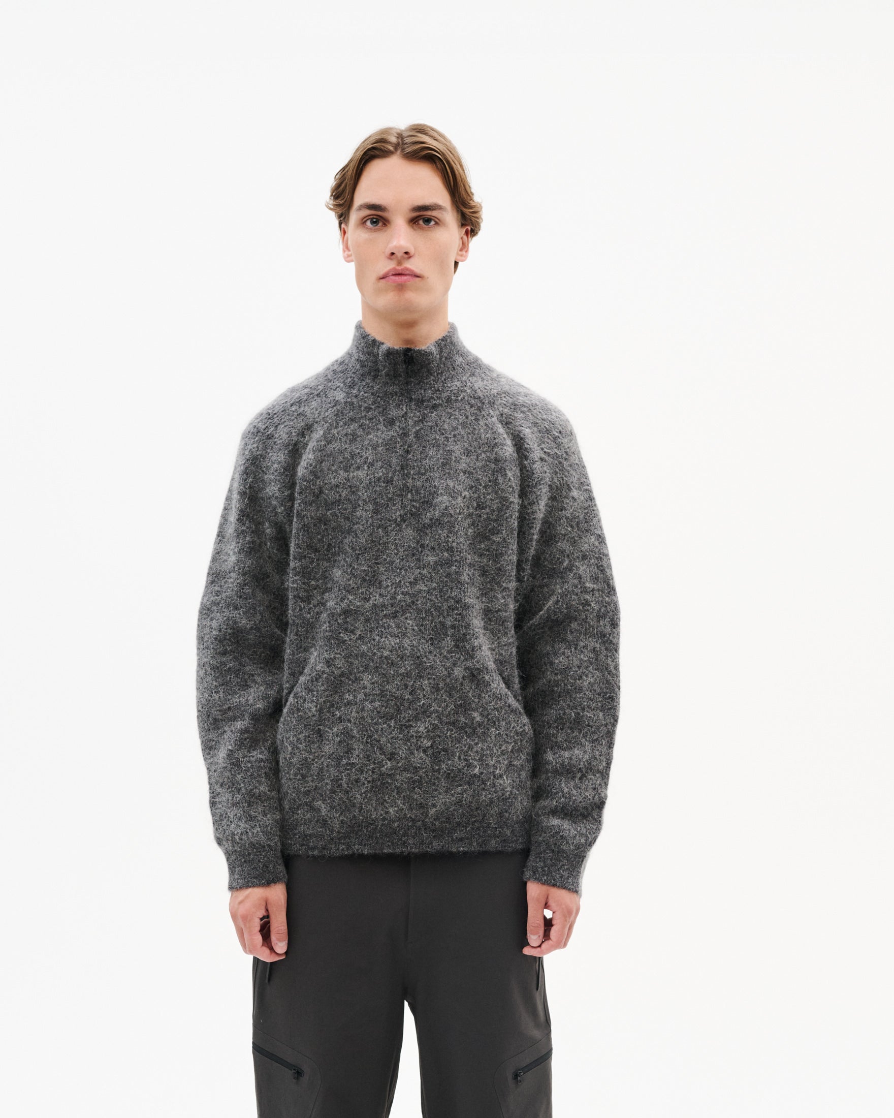 【HIKING PATROL】ESSENCE MOHAIR MIXED KNIT TOP - DK GREY