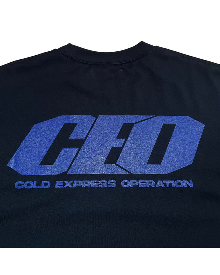 胸元と背面にシルクスクリーンで"CEO"グラフィックがプリントされたTシャツ。