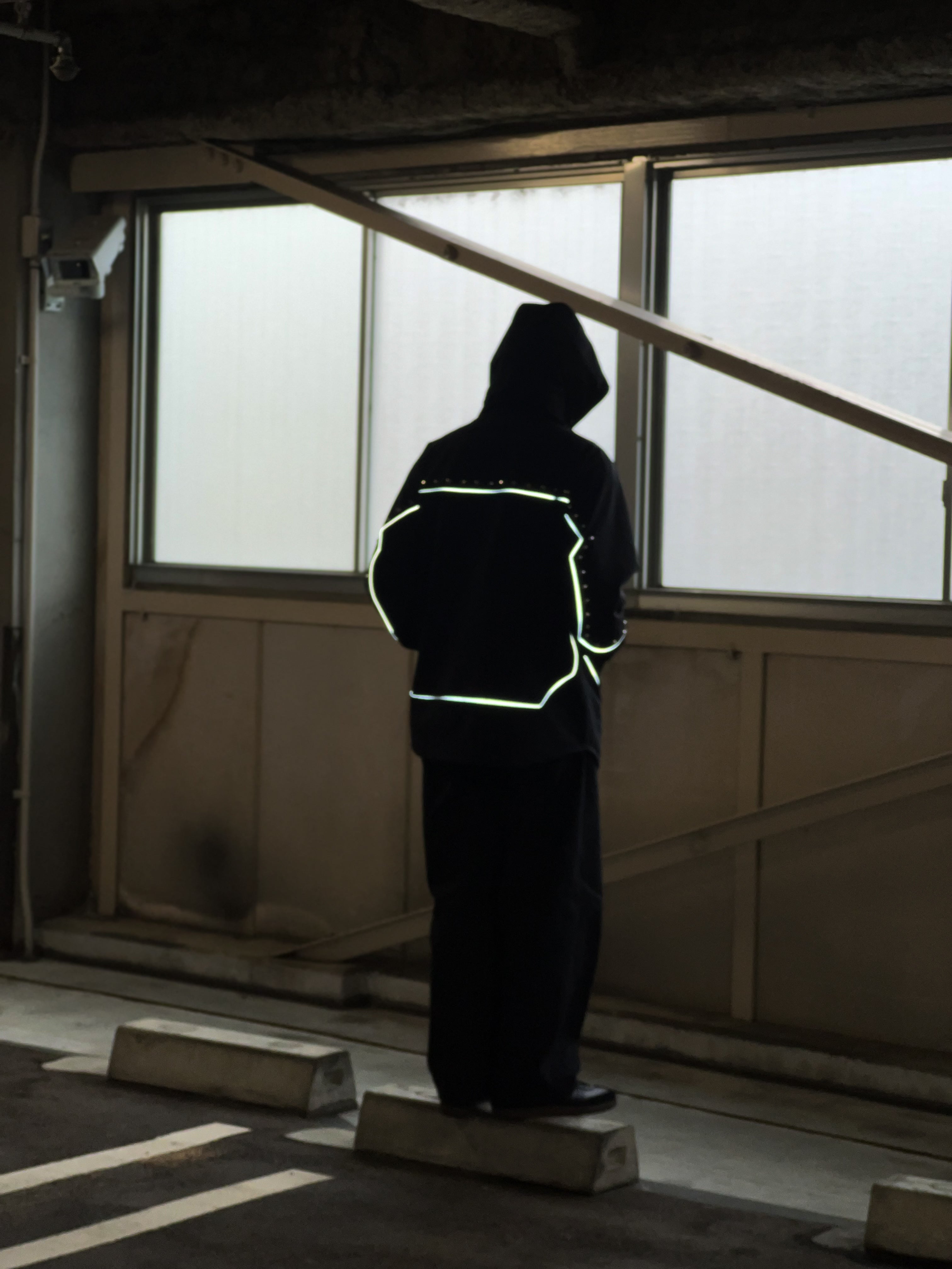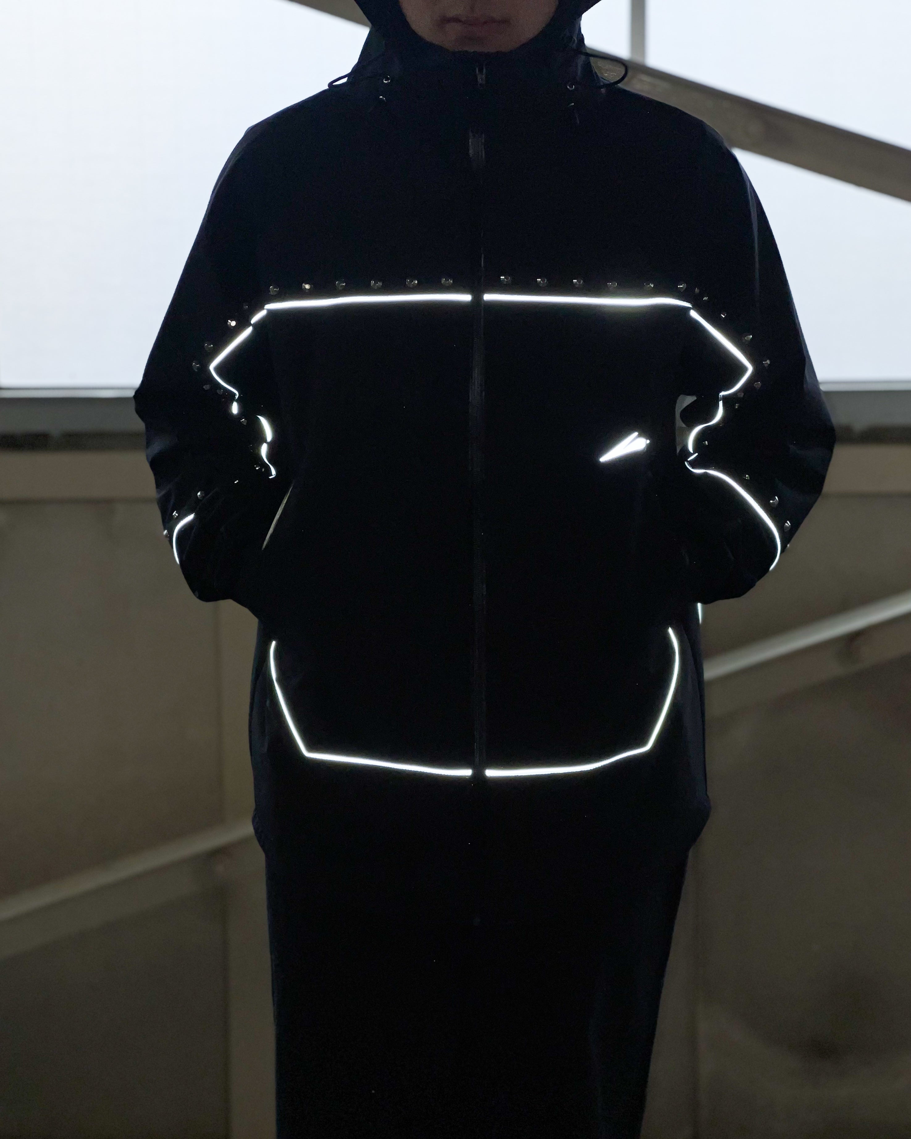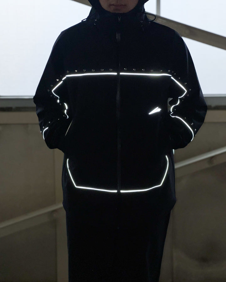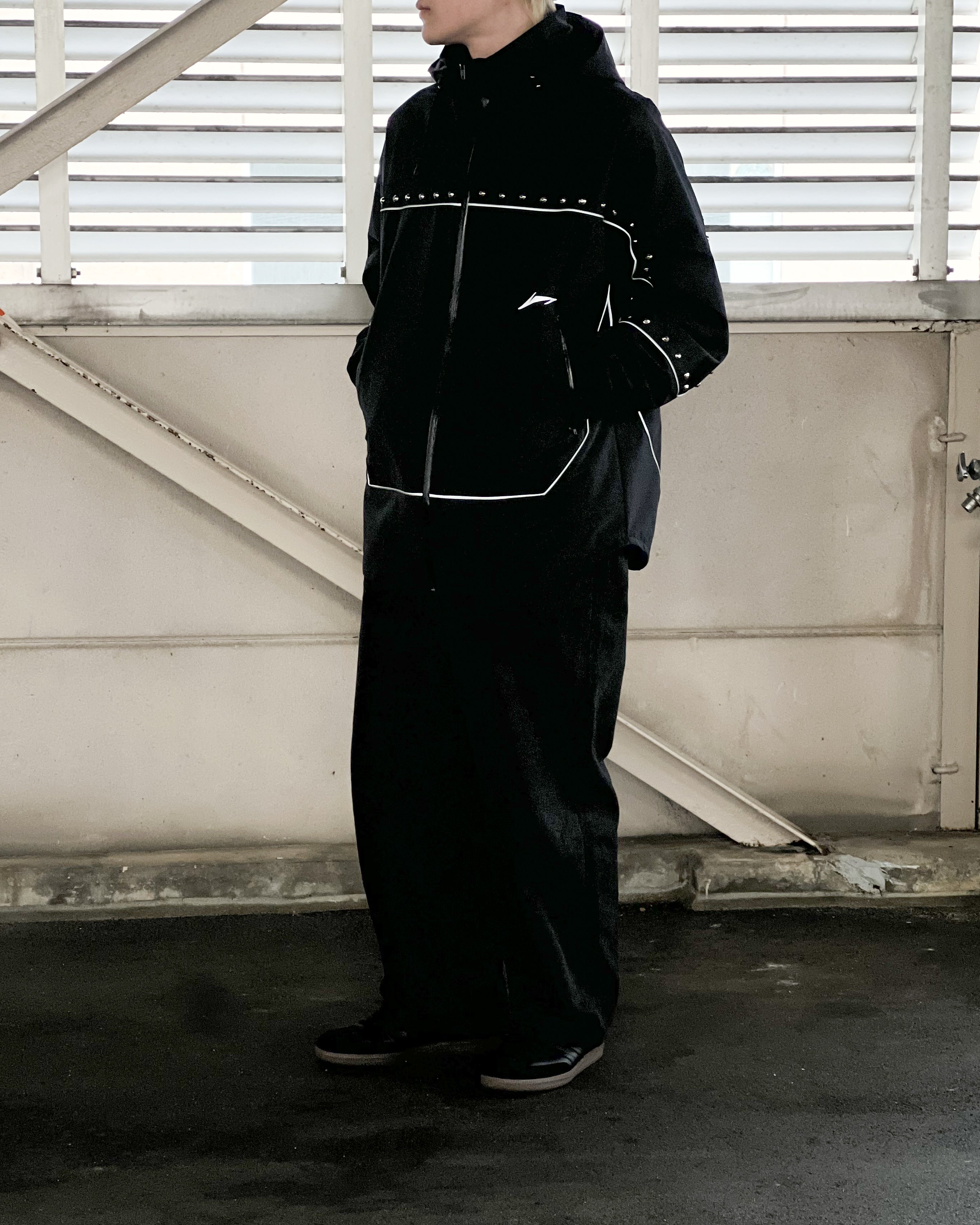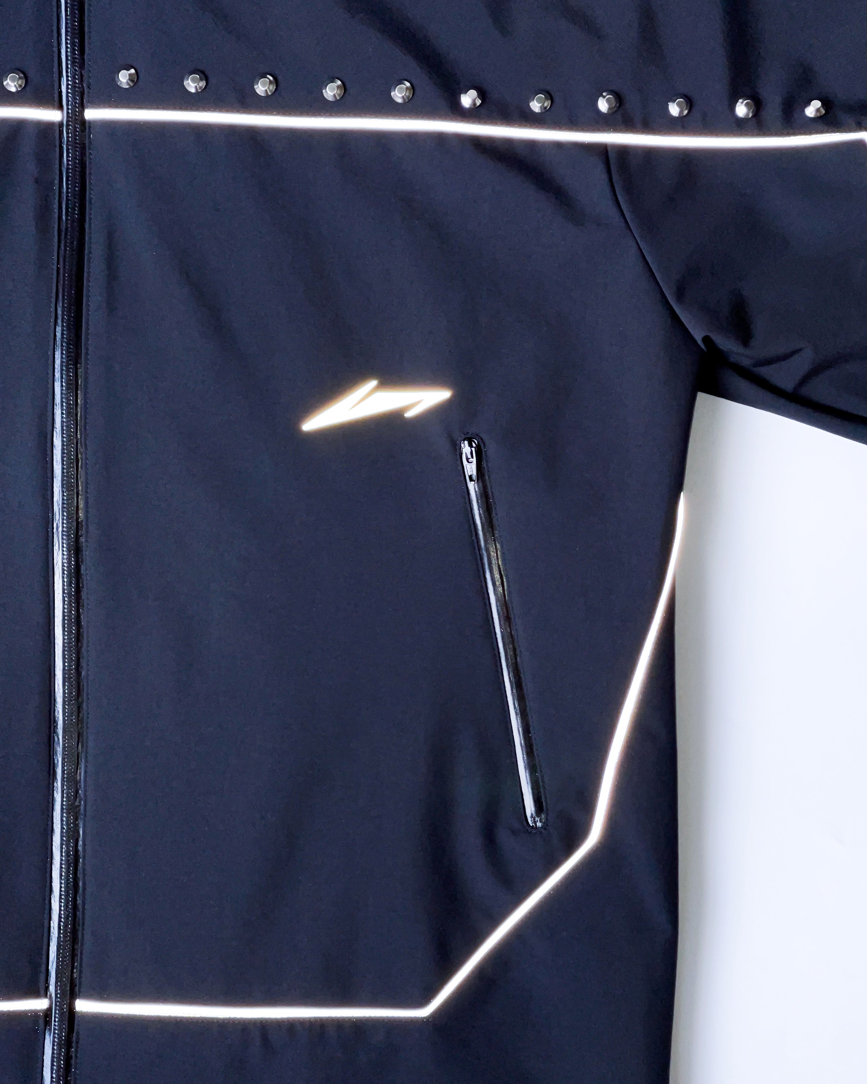 体を覆うように配置されたスタッズやリフレクターパイピングなどice&technoらしいエッジが効いた一着。