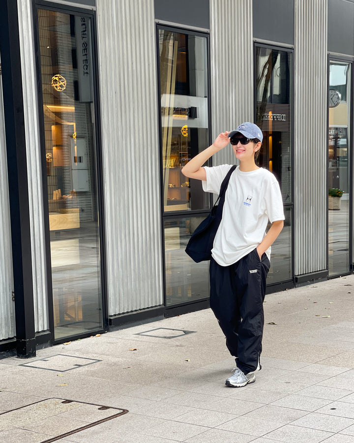 フロントは刺繍、バックはスライドポケット&タグ付きデザイン。