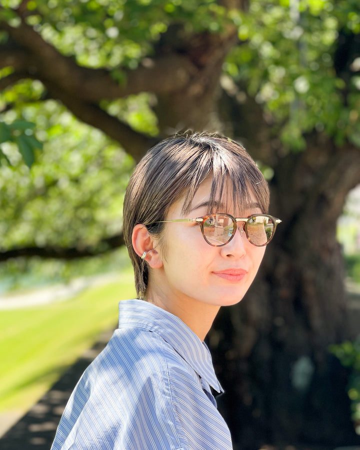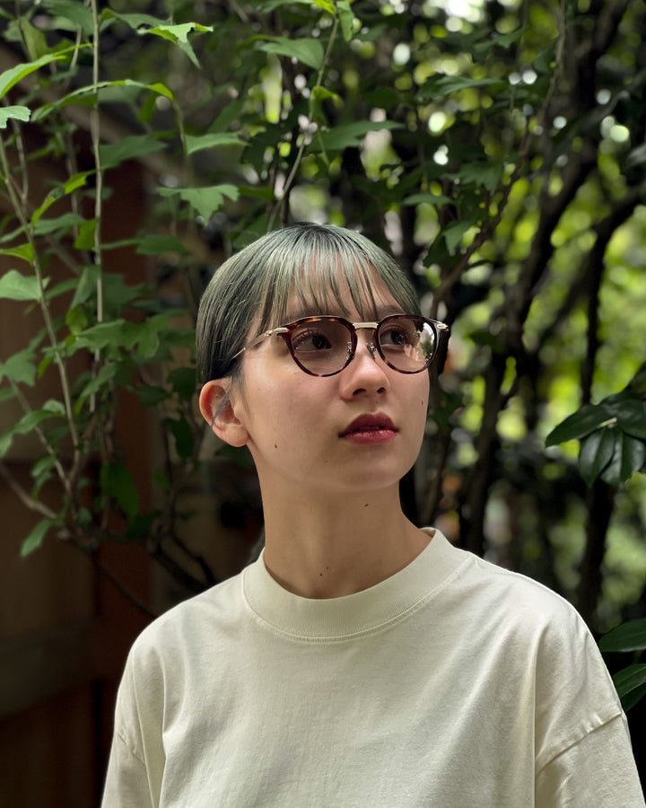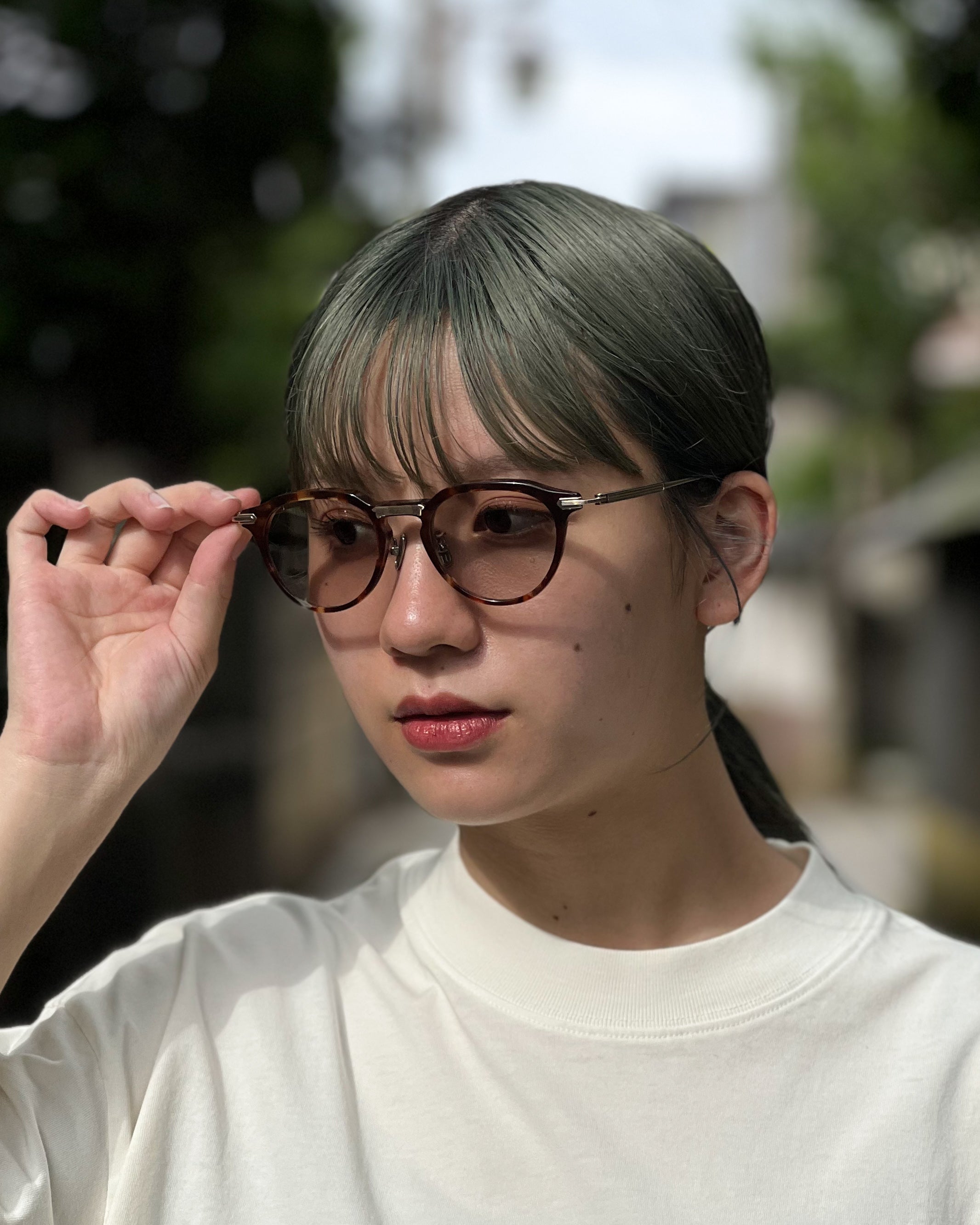 レンズシェイプはパント(ボストン)で、フロントのアウトラインはクラウンパントですが