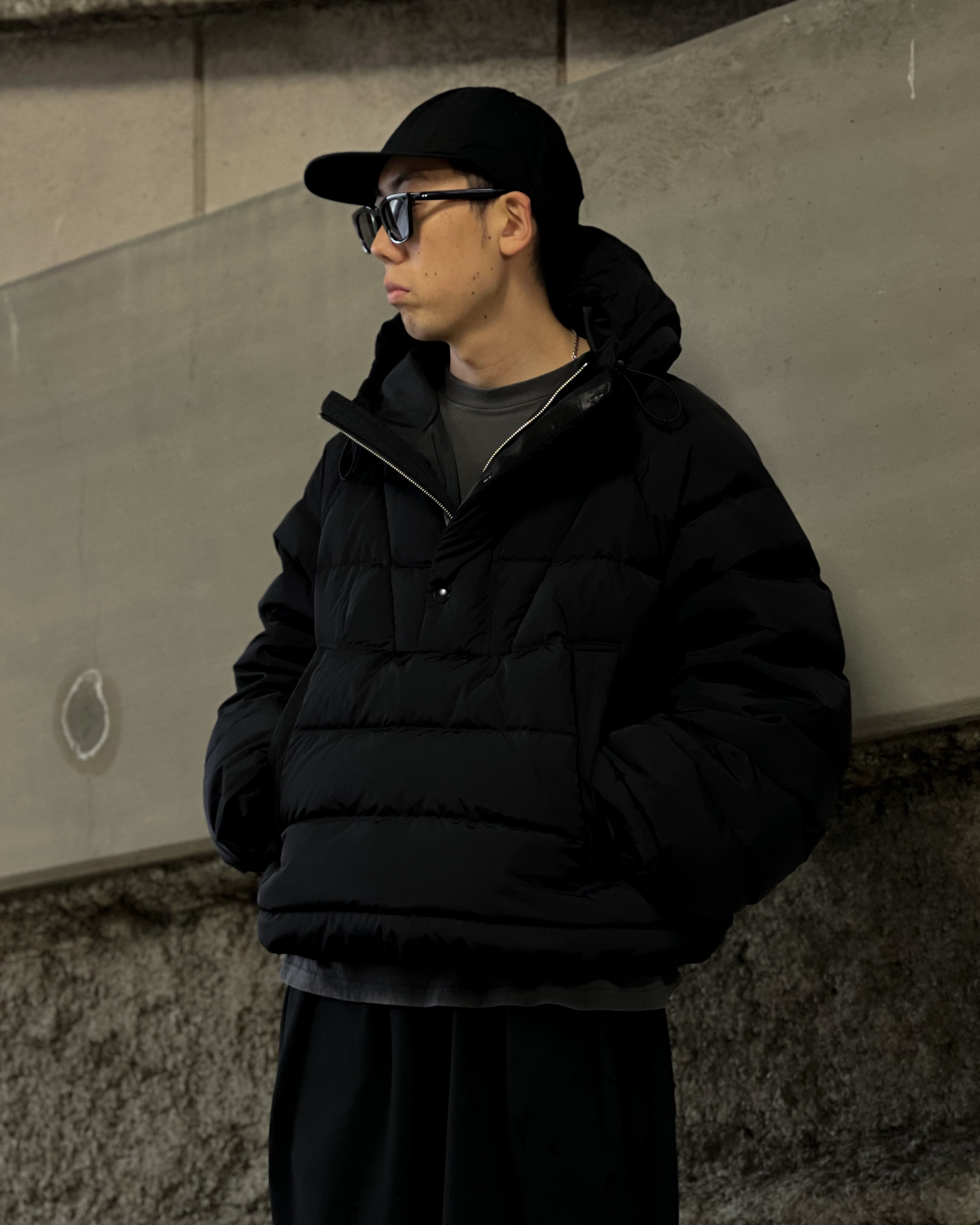 【WANNA FOUNDATION】 NYLON ANORAK DOWN JACKET - BLACK(11月上旬再入荷予定)